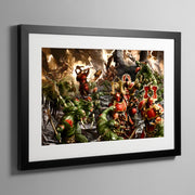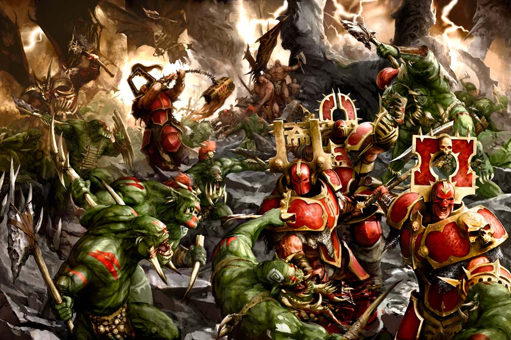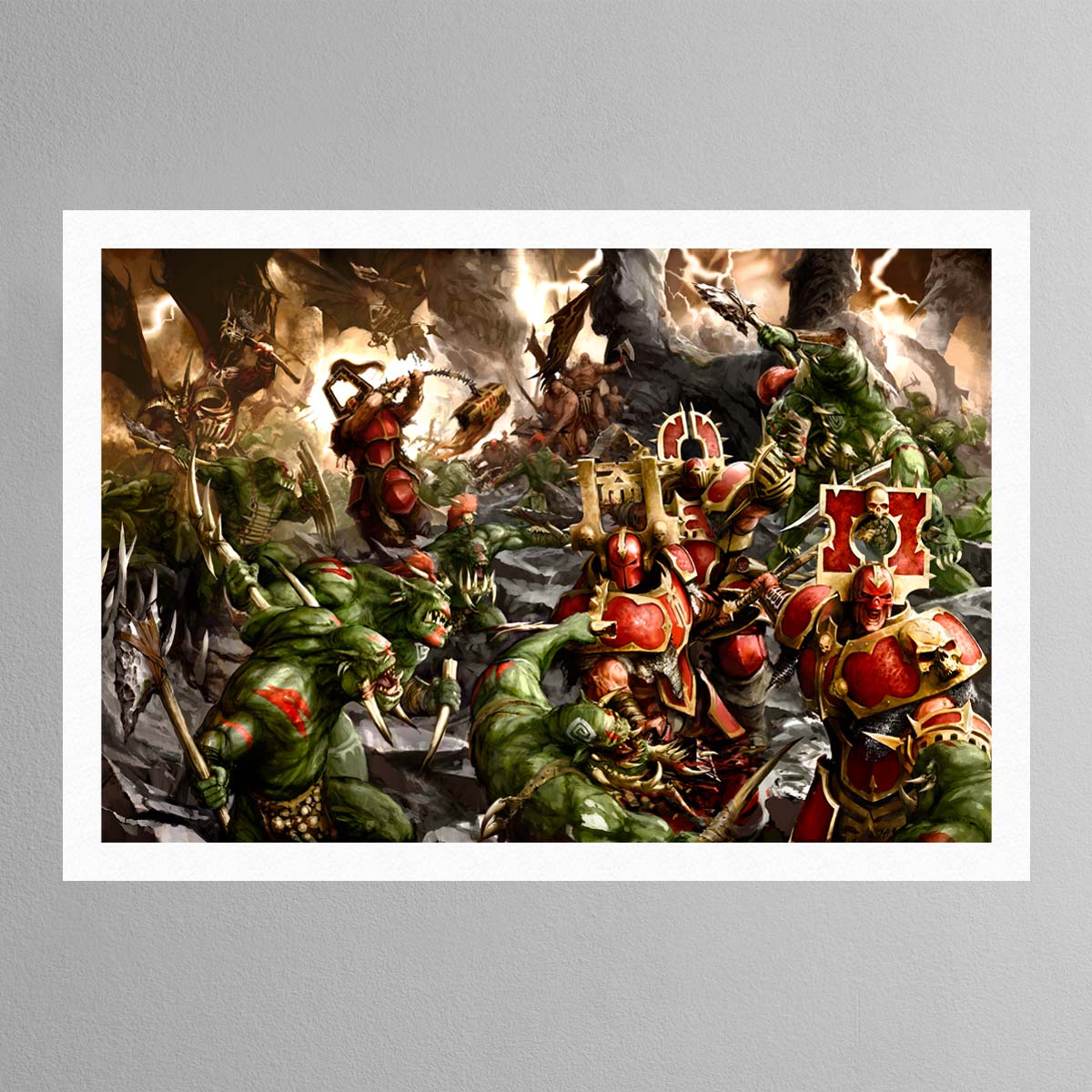 This intense battle scene by Alex Boyd resonates with energy, depicting a furious clash between Bloodbound and Bonesplitterz.