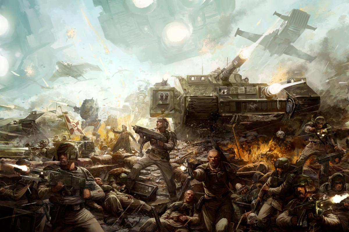 Backed up by a mighty Baneblade, the Cadians take the fight to the enemy.