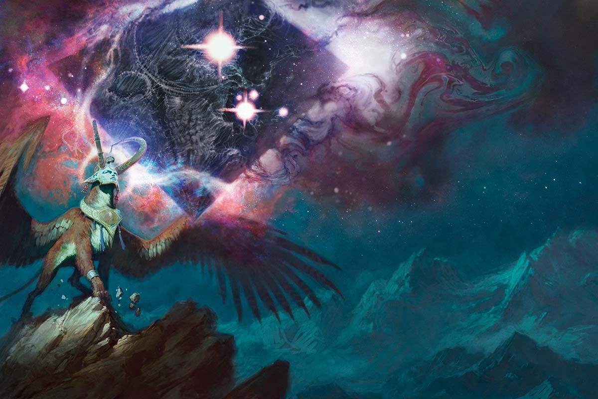 First amongst the Lumineth to bring war to the forces of darkness is Teclis, for he knows well the cost of isolationism. With his kindred spirit Celennar – the incarnate soul of Hysh’s true moon – at his side, he descends to the field of battle in a blaze of divine moonlight, searing beams of Hyshian magic all around.