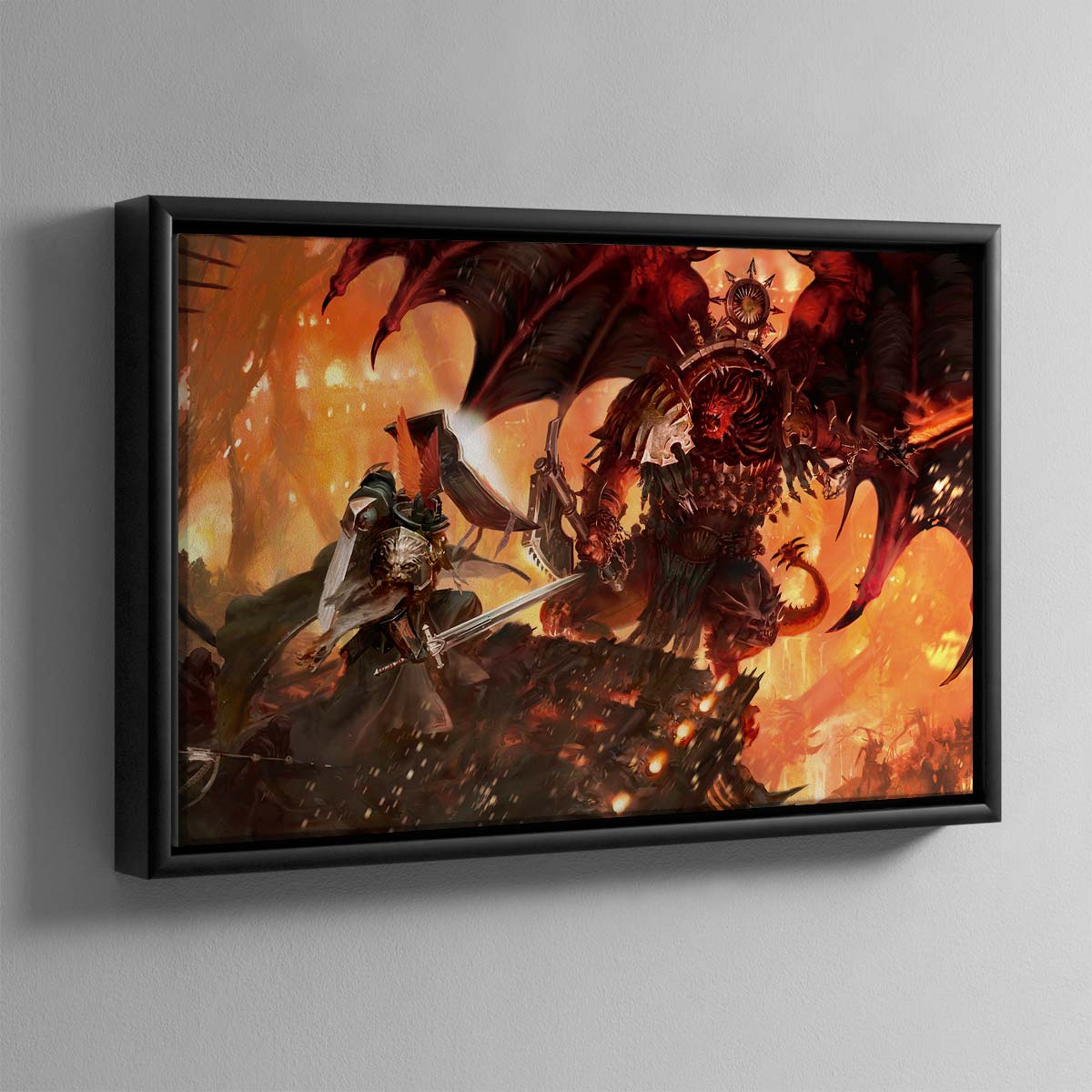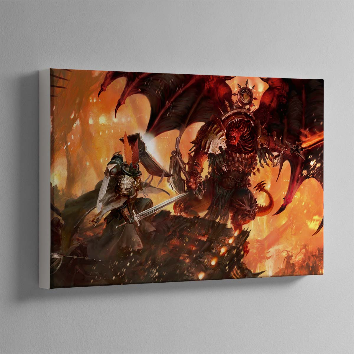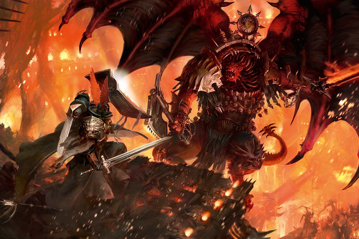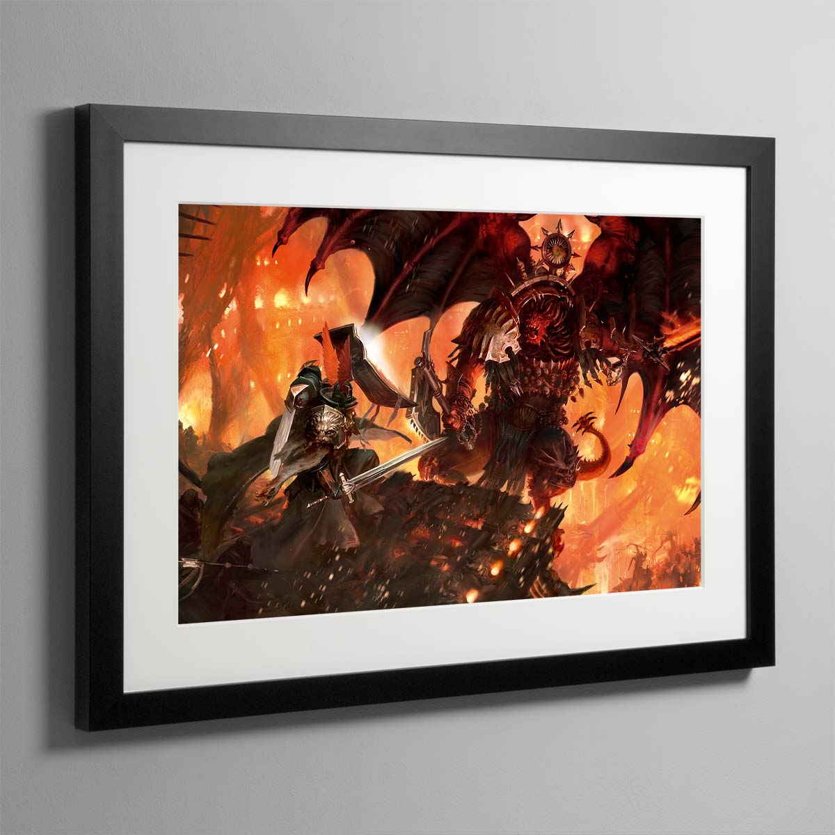The Red Angel howled and launched himself at the Lion. Their mighty blades clashed again and again, sparks raining from each impact. The sword Samni’arius struck the Lion’s shield and rebounded in a concussive pulse of light and force. Back and forth across the tower top the two demigods battled, Angron raining a constant storm of blows upon his foe while the Lion demonstrated sublime martial skill in fending off or evading every strike. Flames and roiling mist whirled about the two combatants, tattering apart each time another shock wave burst from the Lion’s shield.