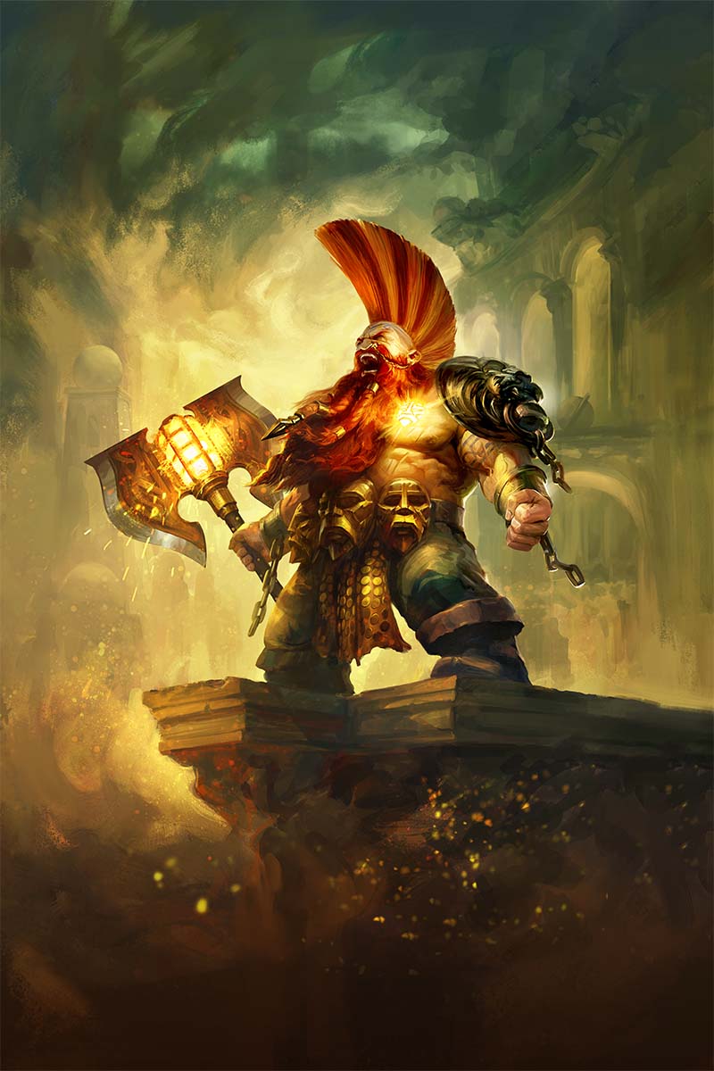 With a roar of pain, the Doomseeker pushed the Master Rune into the muscle of his chest. His body tensed and shivered and appeared to swell. The white lines that Barrowalker’s purple sun had struck into his beard flashed golden. And golden they stayed. The power that had until that point been spiralling out of control earthing itself in the meat and tissue of Duardin muscle.