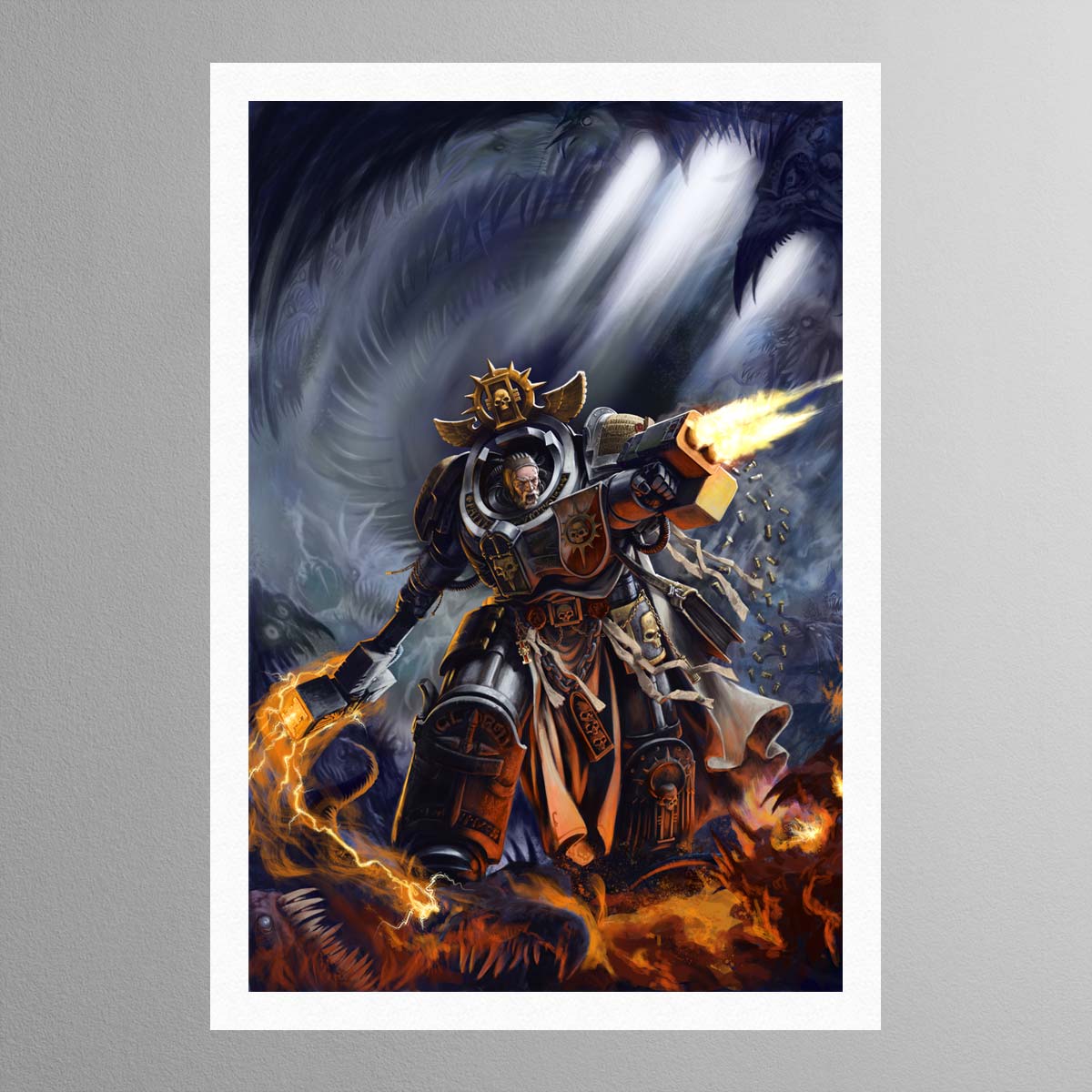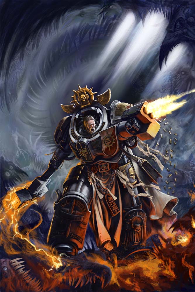 Aldrik Voldus, Warden of the Grey Knights’ Librarius, wielding the mighty Nemesis Daemon Hammer, Malleus Argyrum.