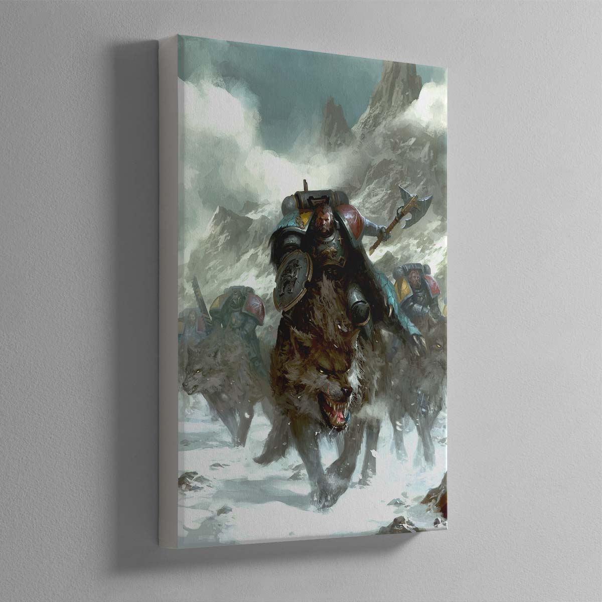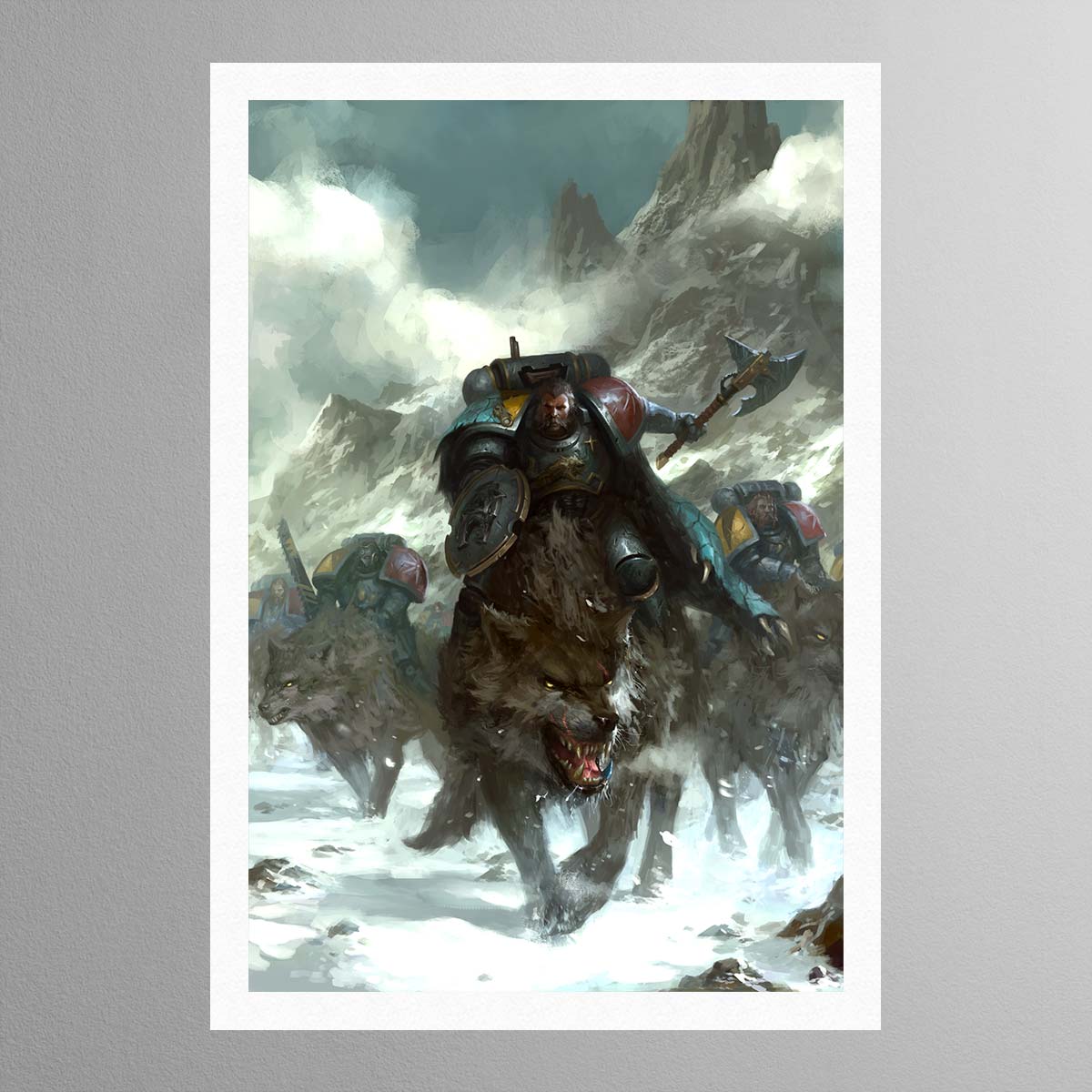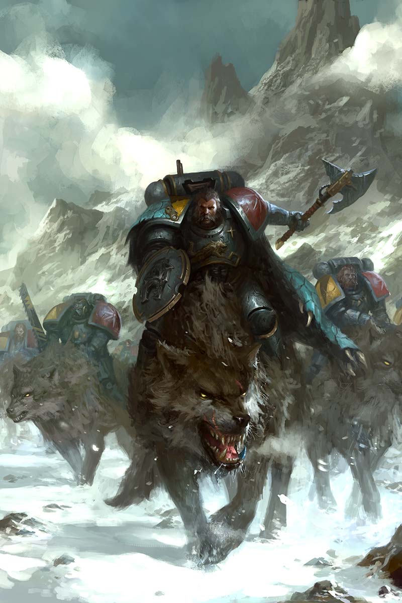 Harald Deathwolf rides to war atop his mighty Thunderwolf, Icetooth, with the howling hordes of Fenris at his back. His Great Company, the Deathwolves, is host to huge packs of beasts, from Fenrisian Wolves to hulking Thunderwolves.