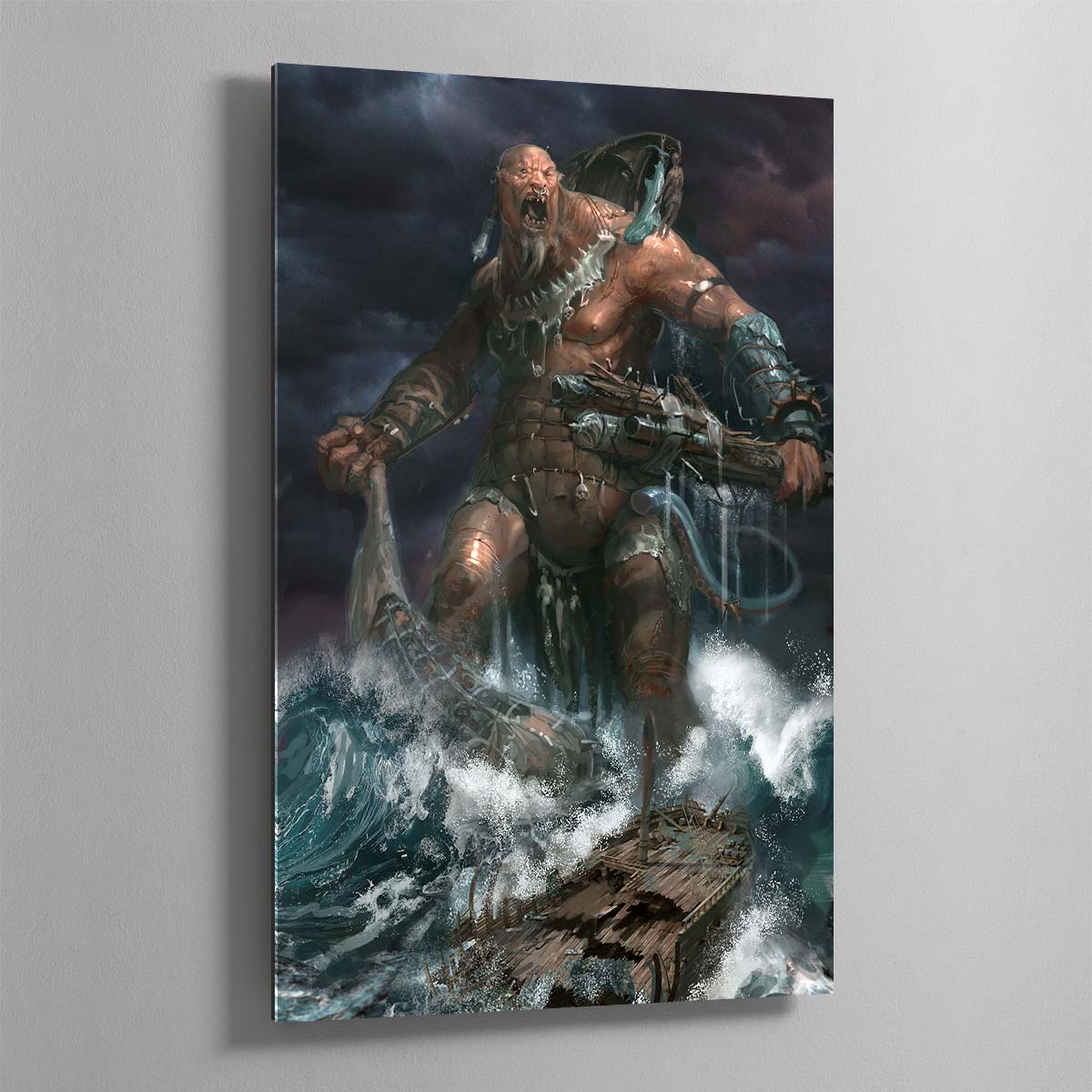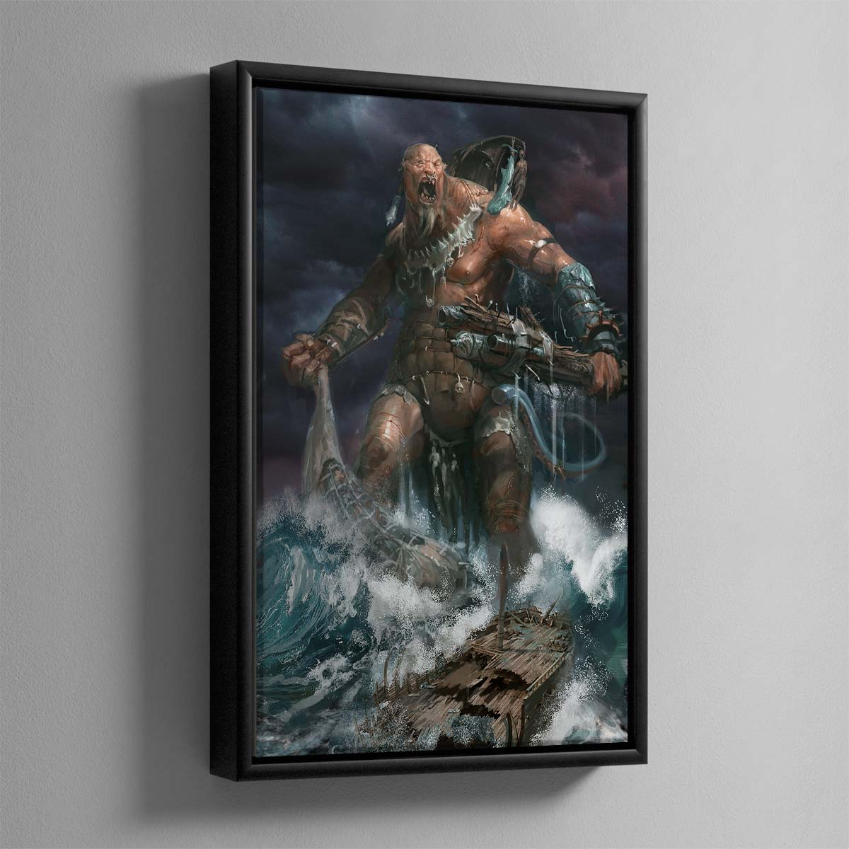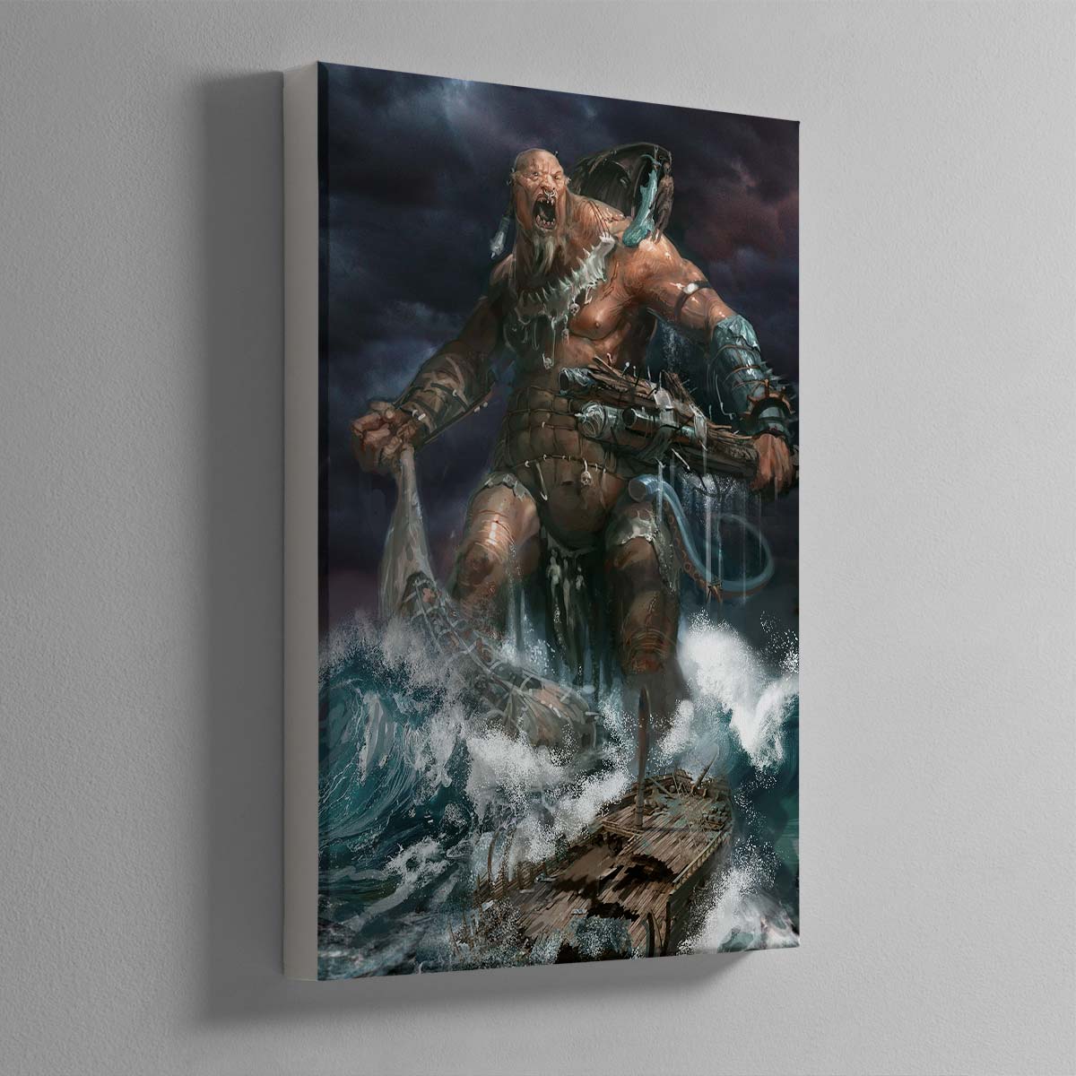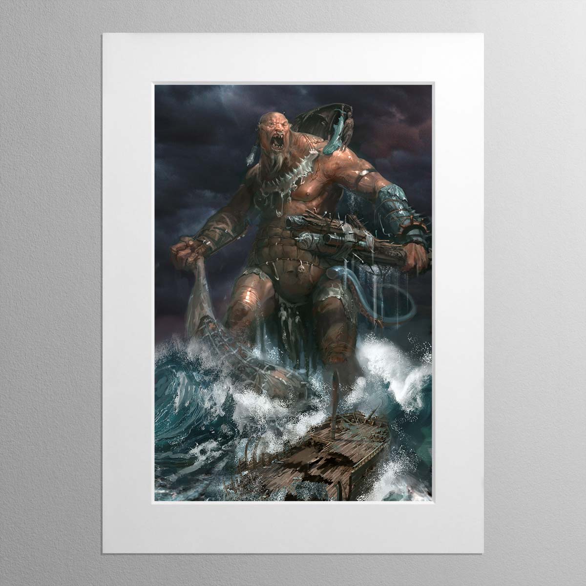 Kraken-eaters are insular Mega-Gargants who prize treasure above all else, exploring ocean trenches and raiding coastal settlements for loot to expand their hoards. These jealous gargants are fiercely territorial, and – unfortunately – consider everything they can see to be their territory. More versed than their kin in the workings of artefacts and mortal devices, they fight with outraged indignation to defend their rightful property and claim the spoils of war.
