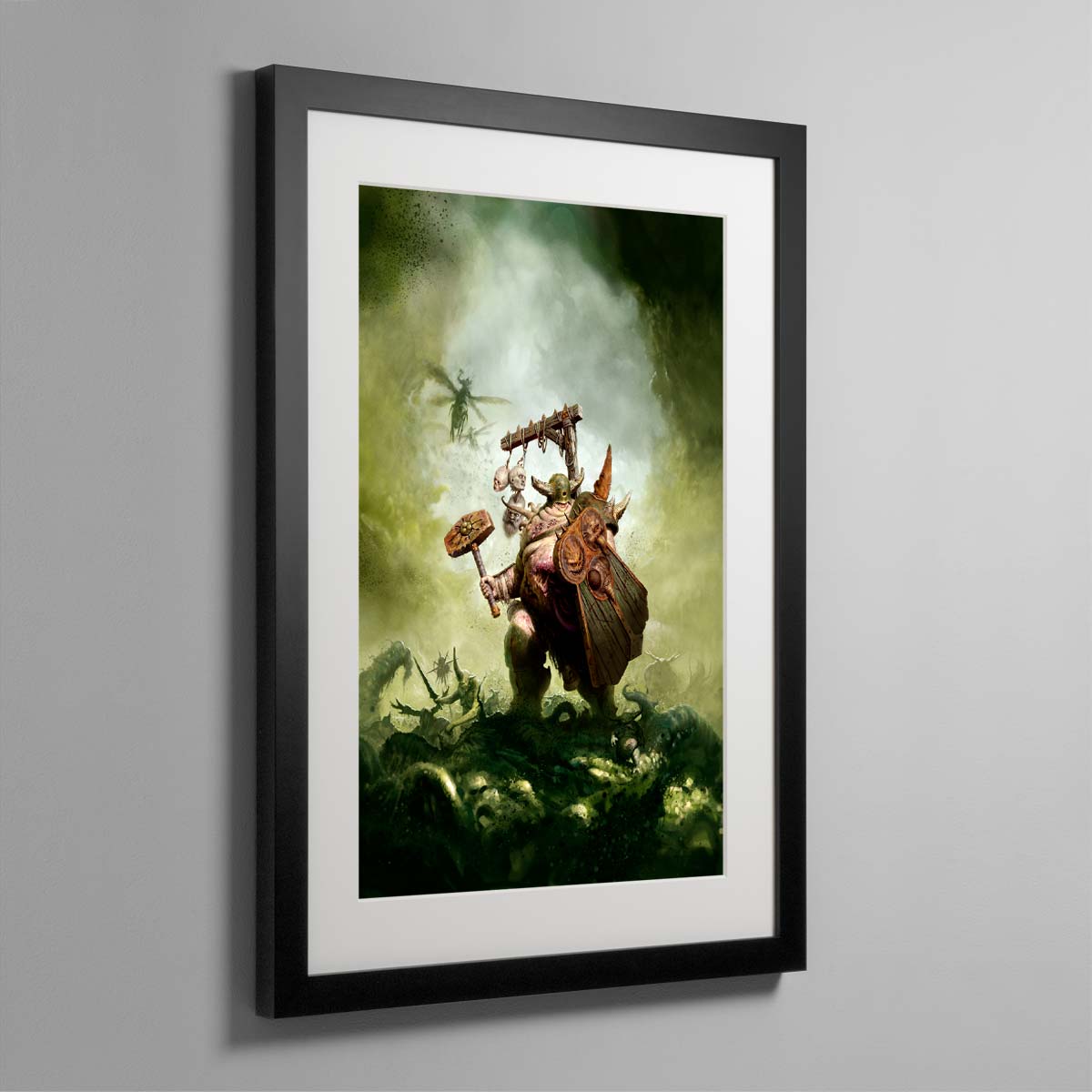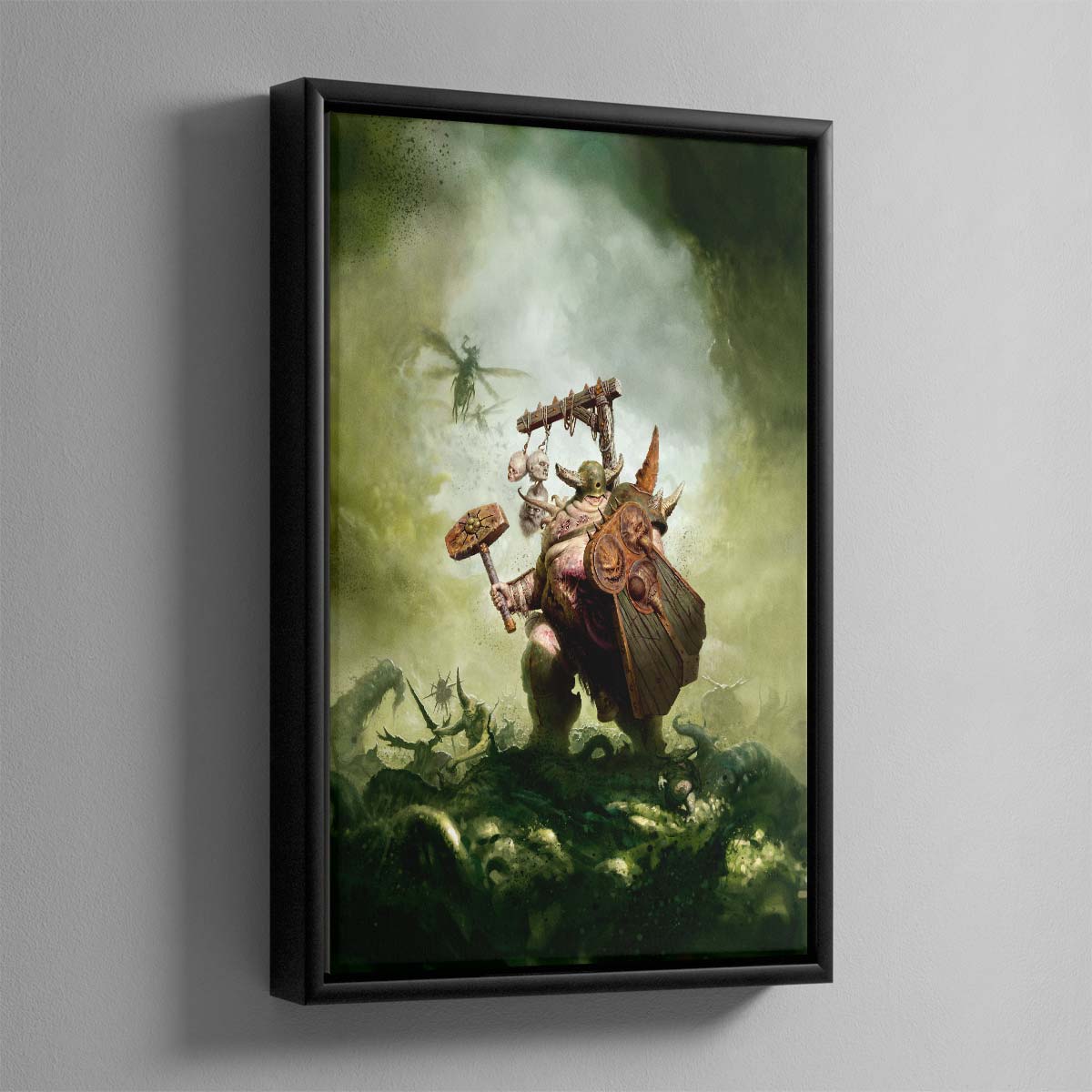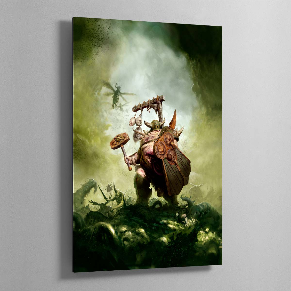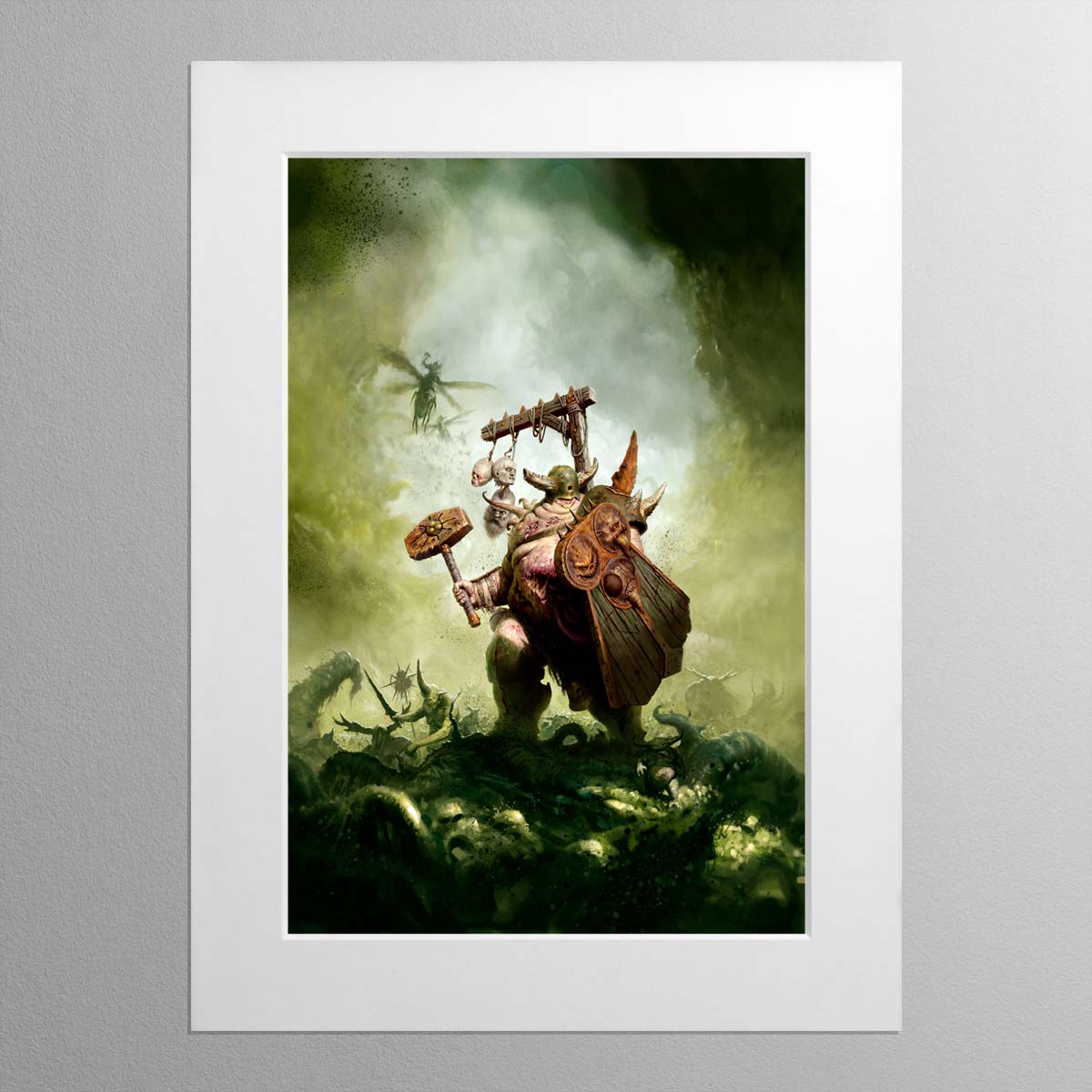 A putrid Lord of Blights lumbers to battle, flies buzzing around his diseased body.
