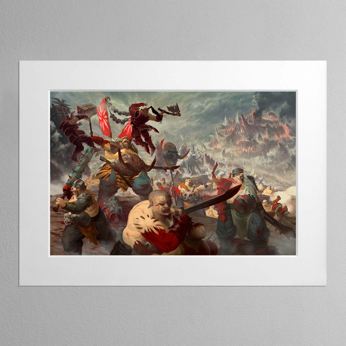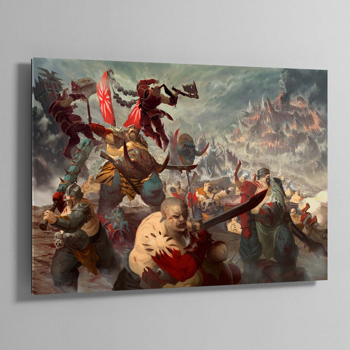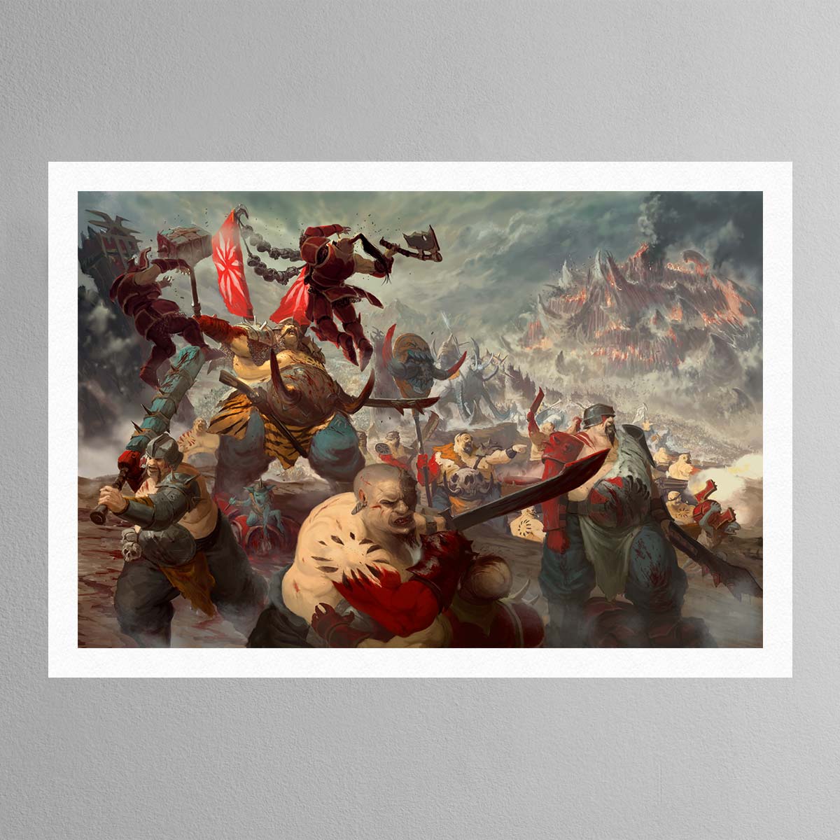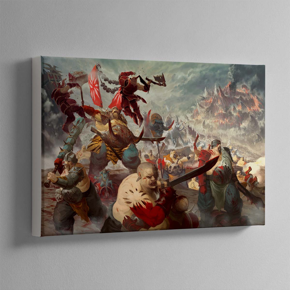 The Gutbusters exist as nomadic empires of warmongering ogors. Larger and stronger than most other races of the realms, they range across the lands robbing and raiding to keep their caravans filled with victuals. They worship Gorkamorka as the Great Beast that Consumes the World, their driving ambition to devour the Mortal Realms. To the Gutbusters, everything is either food for now or food for later, and their minds are forever fixated on where their next juicy meal is coming from. Many favour bludgeoning weapons, and sometimes even blunt their blades, so as not to lose any precious blood or ruin organs when they slay their enemies, saving the tenderised meat-bags for a bit of snacking later on.