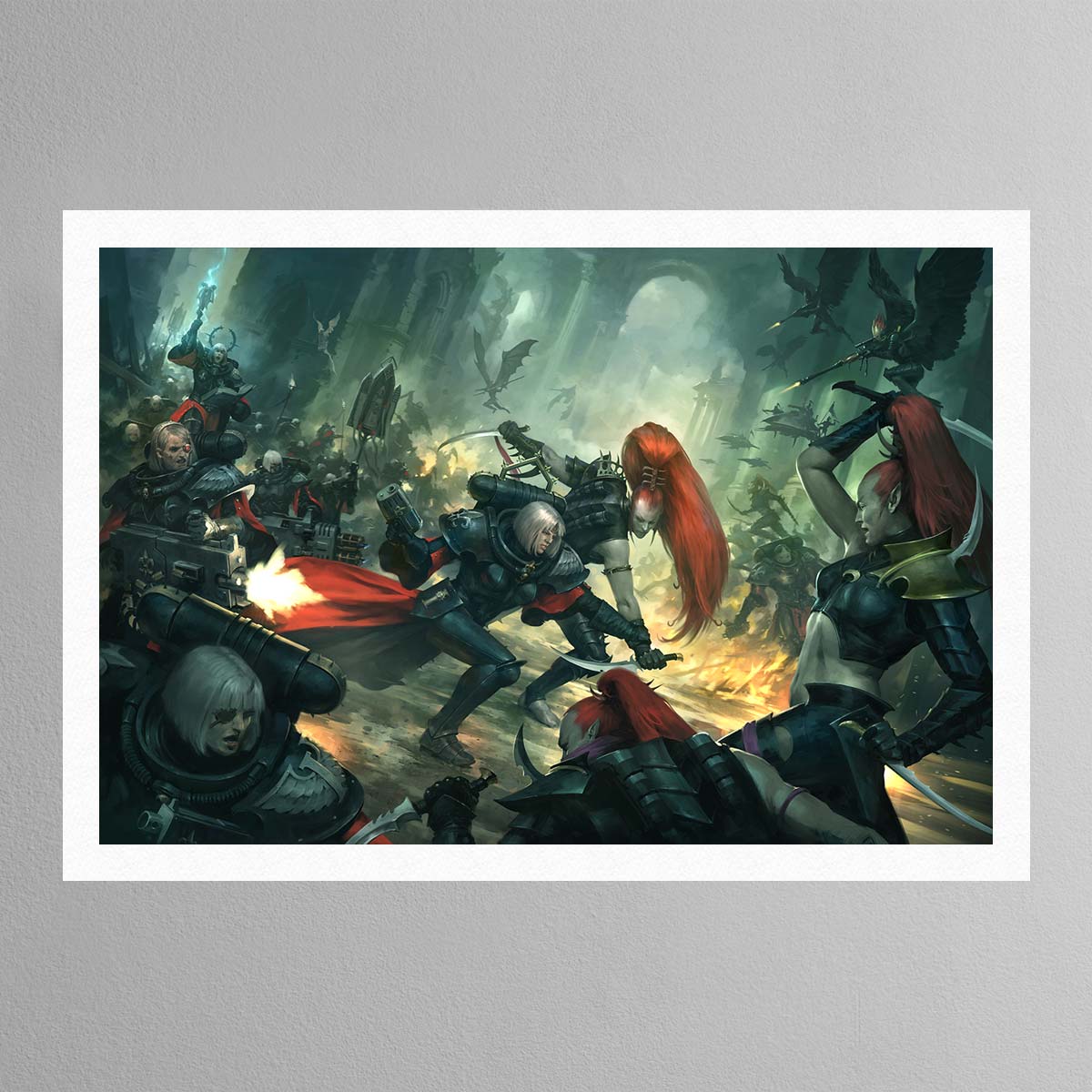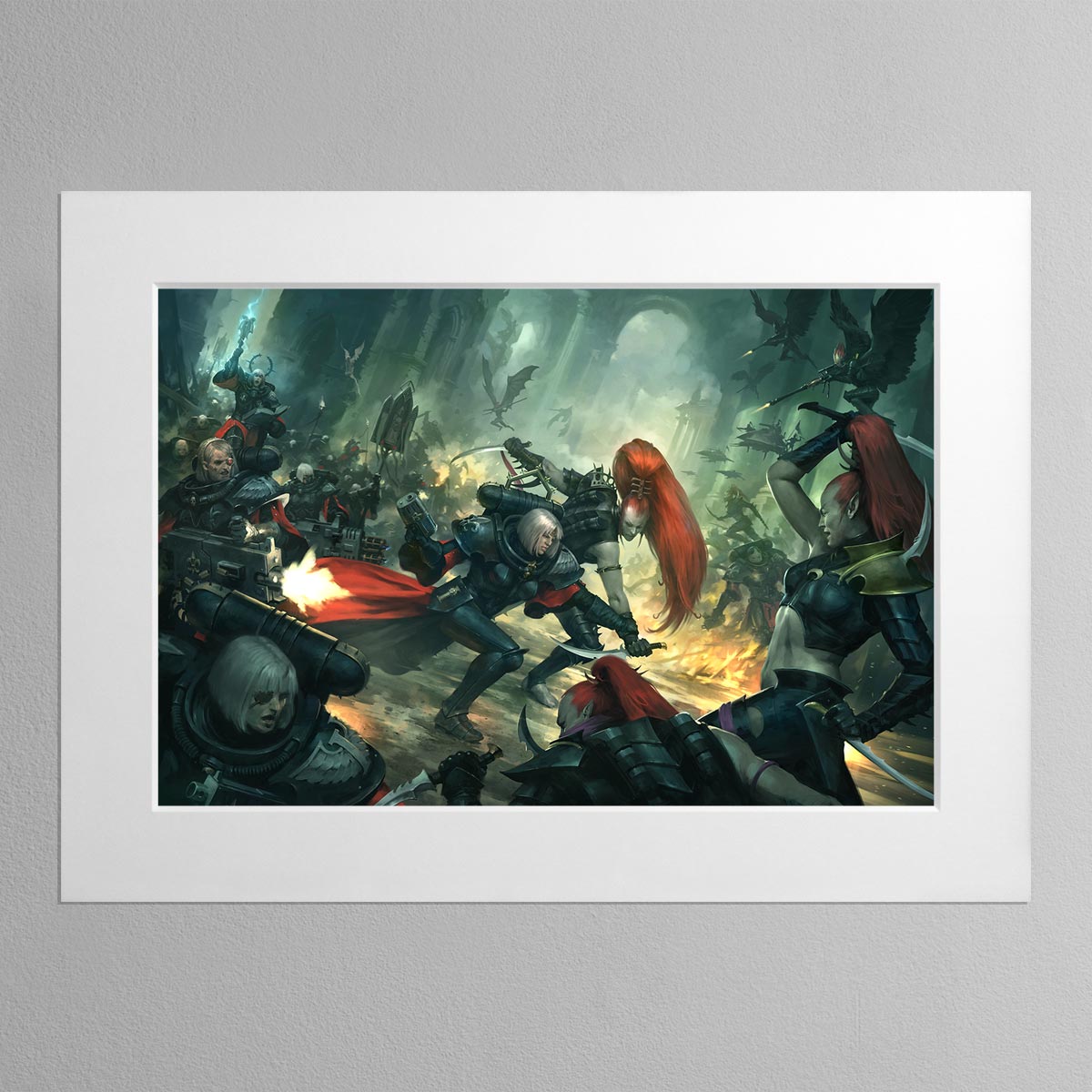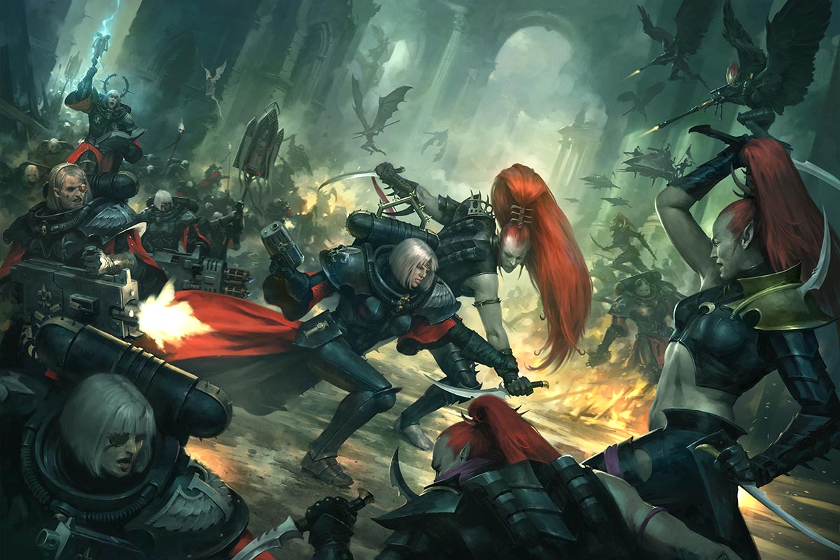 What the sisters found was a defiled city in anarchy. Screams of agony and horror were mixed with those of ecstasy and exultation. Even in these conditions, the Imperial defenders bravely fought on. Though Palatine Luminas desired to aid the city’s defenders, she knew that her Mission did not possess the numbers to purge the city. She must focus on securing the saint’s relic before it’s too late. Palatine Luminas and her sister fought their way across the city, rendering help whenever they could to the Imperial defenders. In one encounter, they obliterated a dozen wychs and forced a murder of Scourges to retreat.