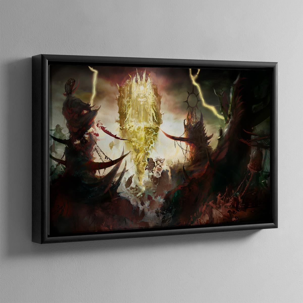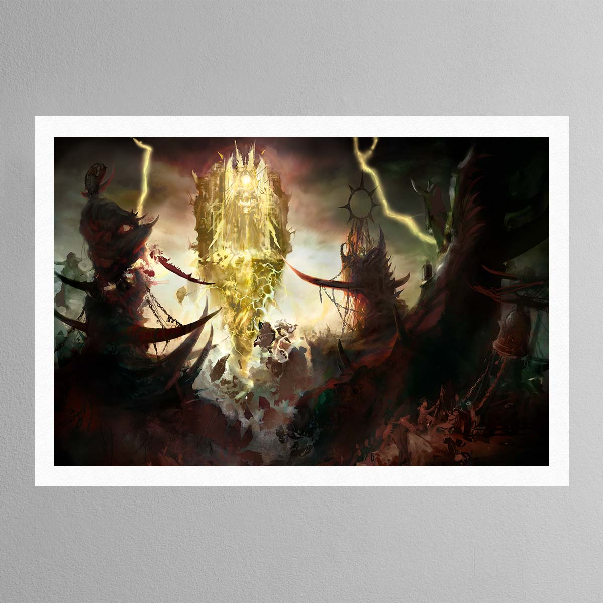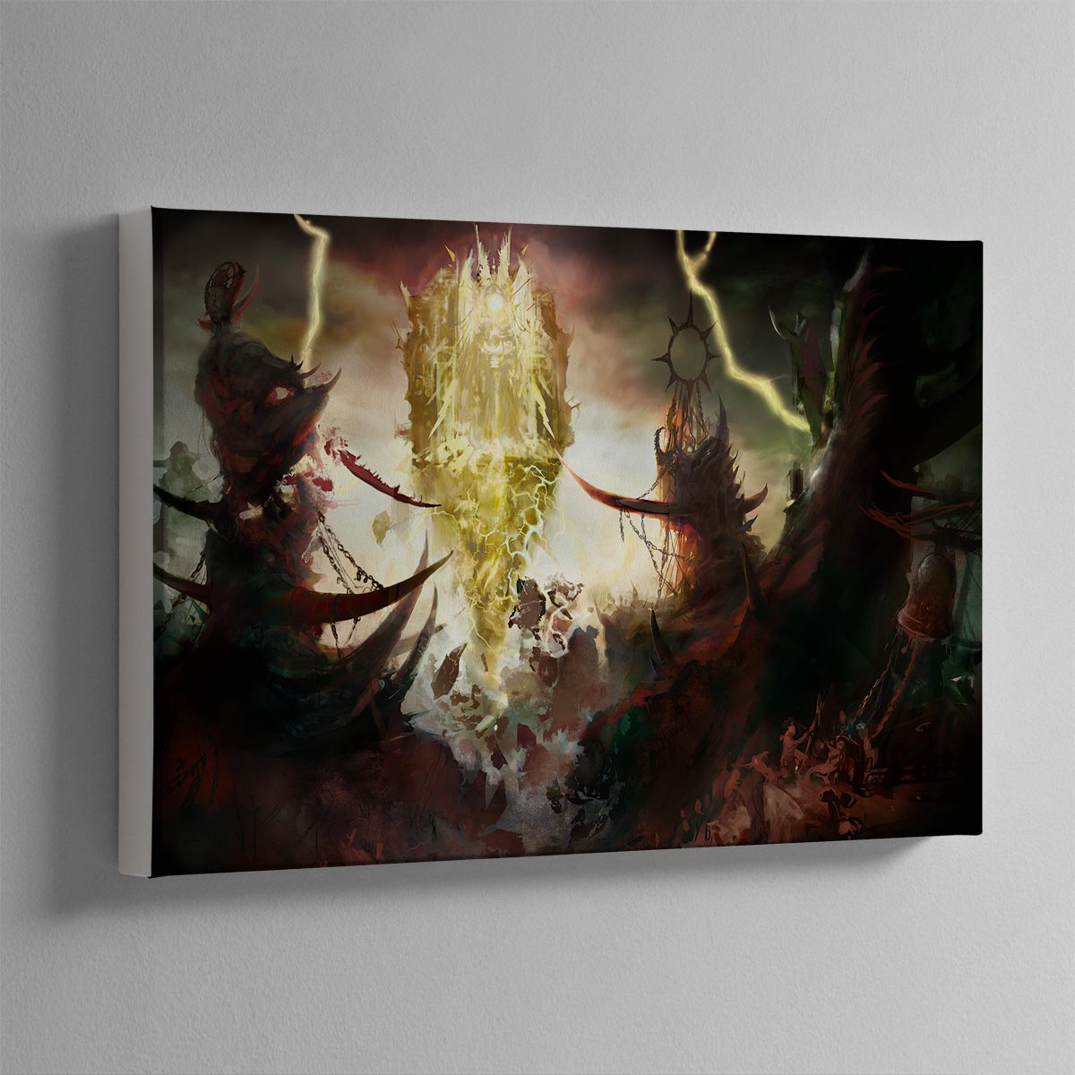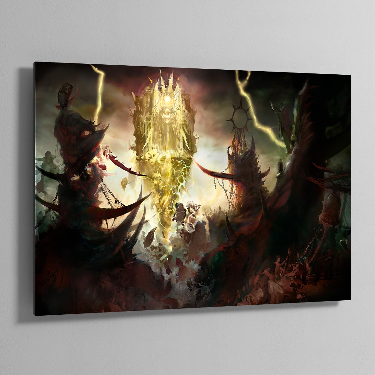 The Realm of Chaos is the realm of the Dark Gods, a nightmarish landscape whose trespassers are devoured, grotesquely transformed, or damned for all eternity. It is a dimension of magic and raw emotions that feeds on the Mortal Realms.