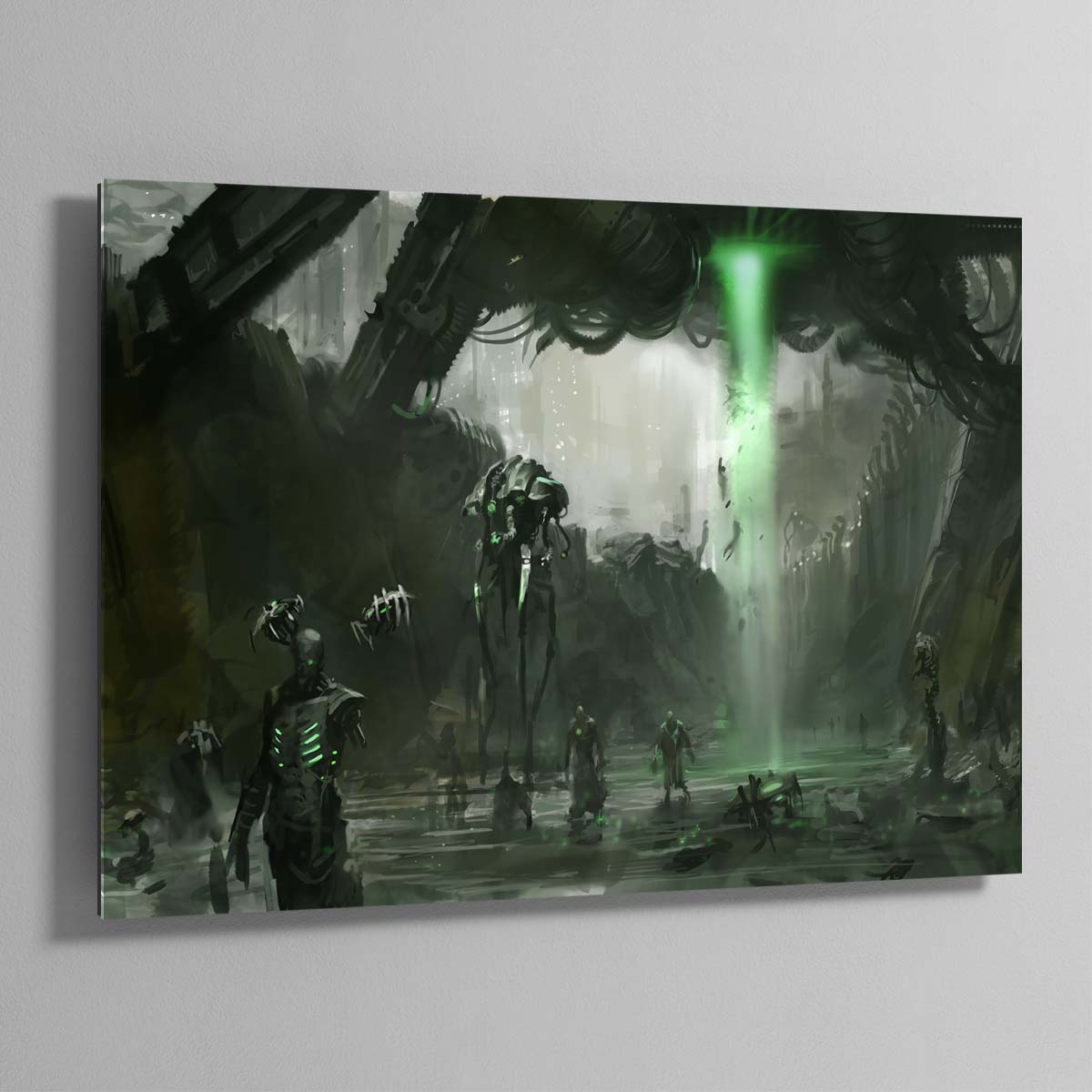 Whatever a tomb world’s nature or conditions, once the sleepers arise its fate is irrevocably altered. Landmasses shudder and huge subterranean tomb cities stir beneath the surface. Vast structures force their way upward, sloughing off the devastated remains of more youthful civilisations amidst seething energy storms. Eerie megastructures ascend into the heavens, ominous guardians taking up watchful stations above the planet as cosmic super-weapons flare to life in their flanks. Swarms of Canoptek constructs sweep across the globe, devouring and recycling the works of younger species. Any trace of the intervening millennia is swept away as the Necrons resume rulership of their domains of old.