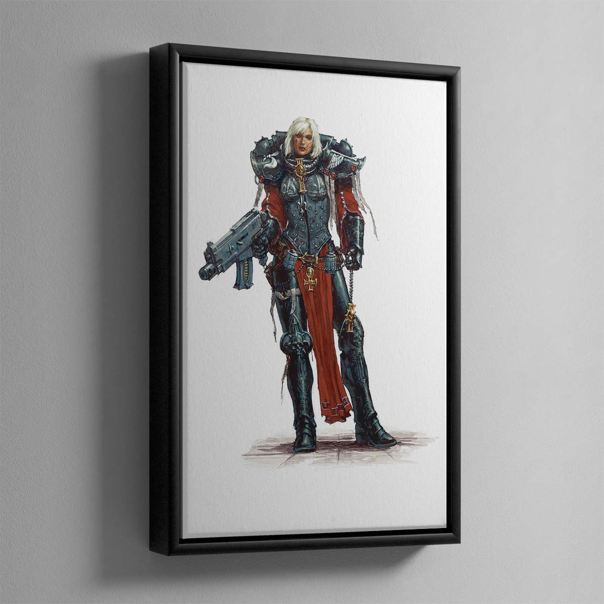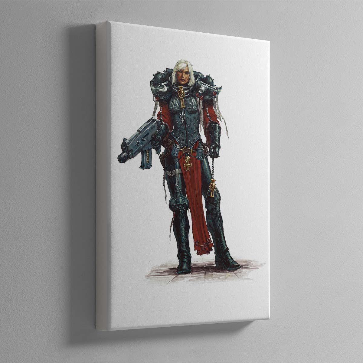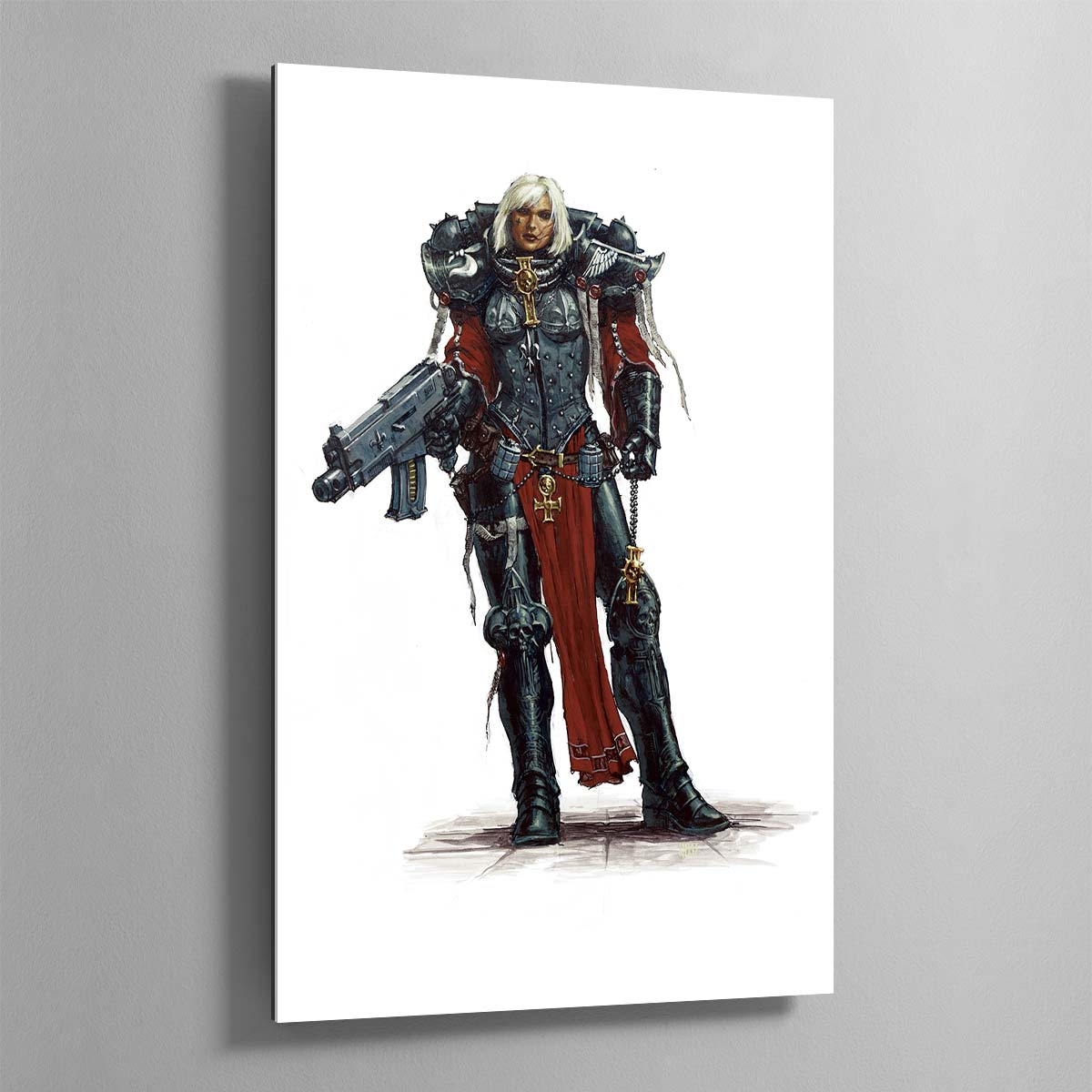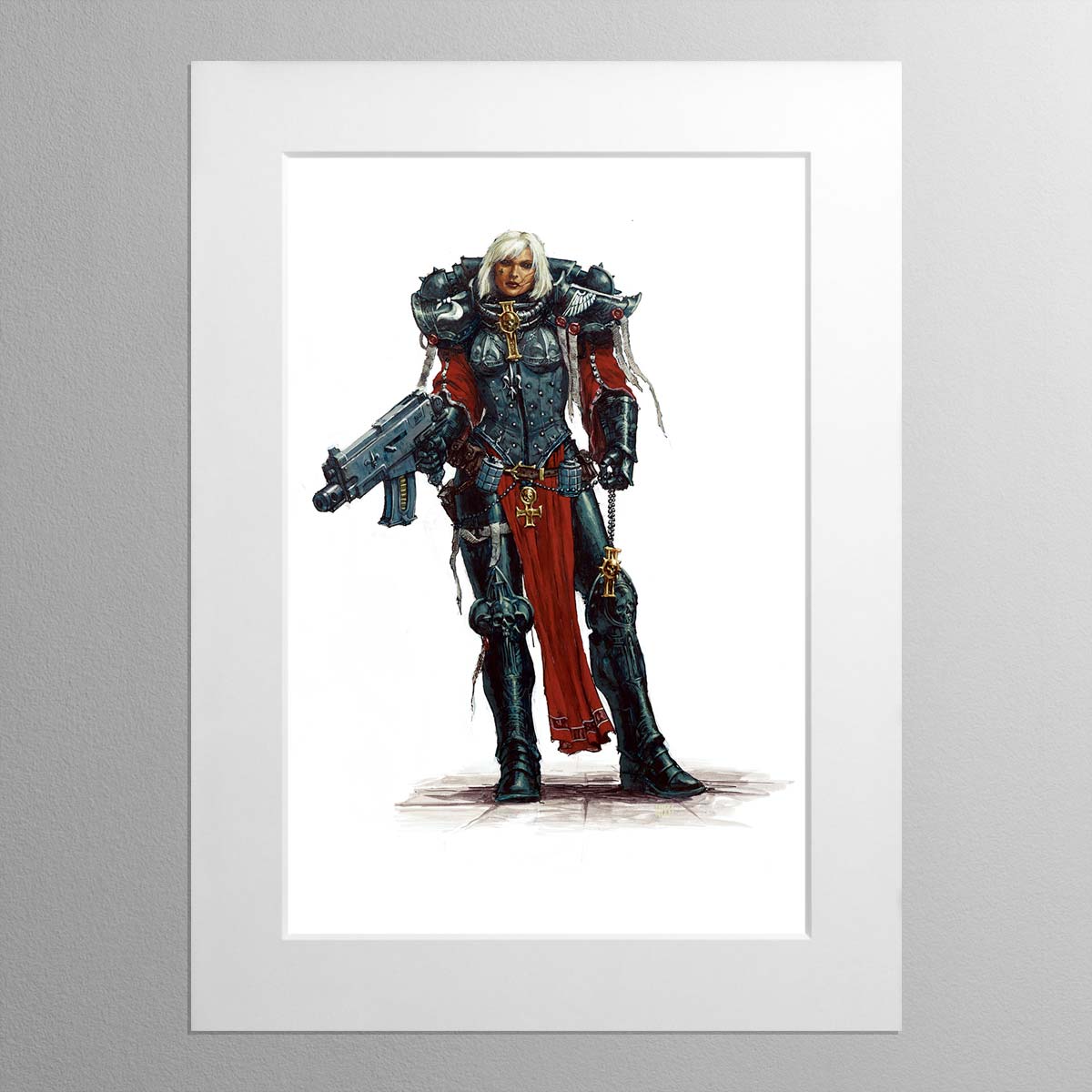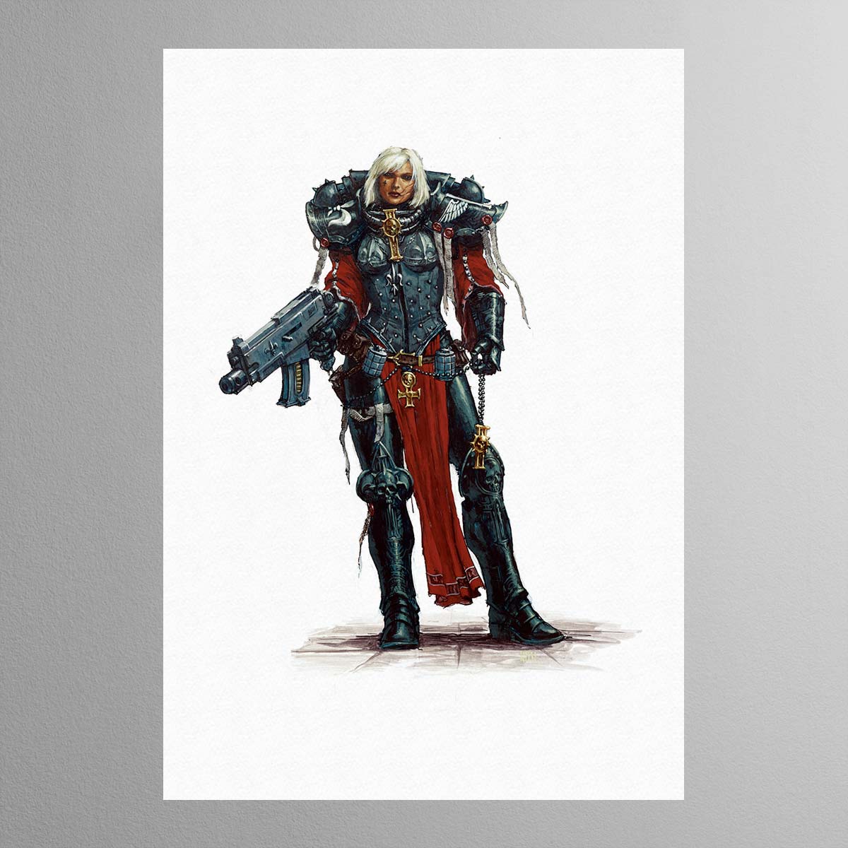 A truly classic piece of Sisters of Battle art. Here we see Sister Amalia, clad in the colours of the Order of Our Martyred Lady and armed with a Godwyn-De’az pattern bolter.