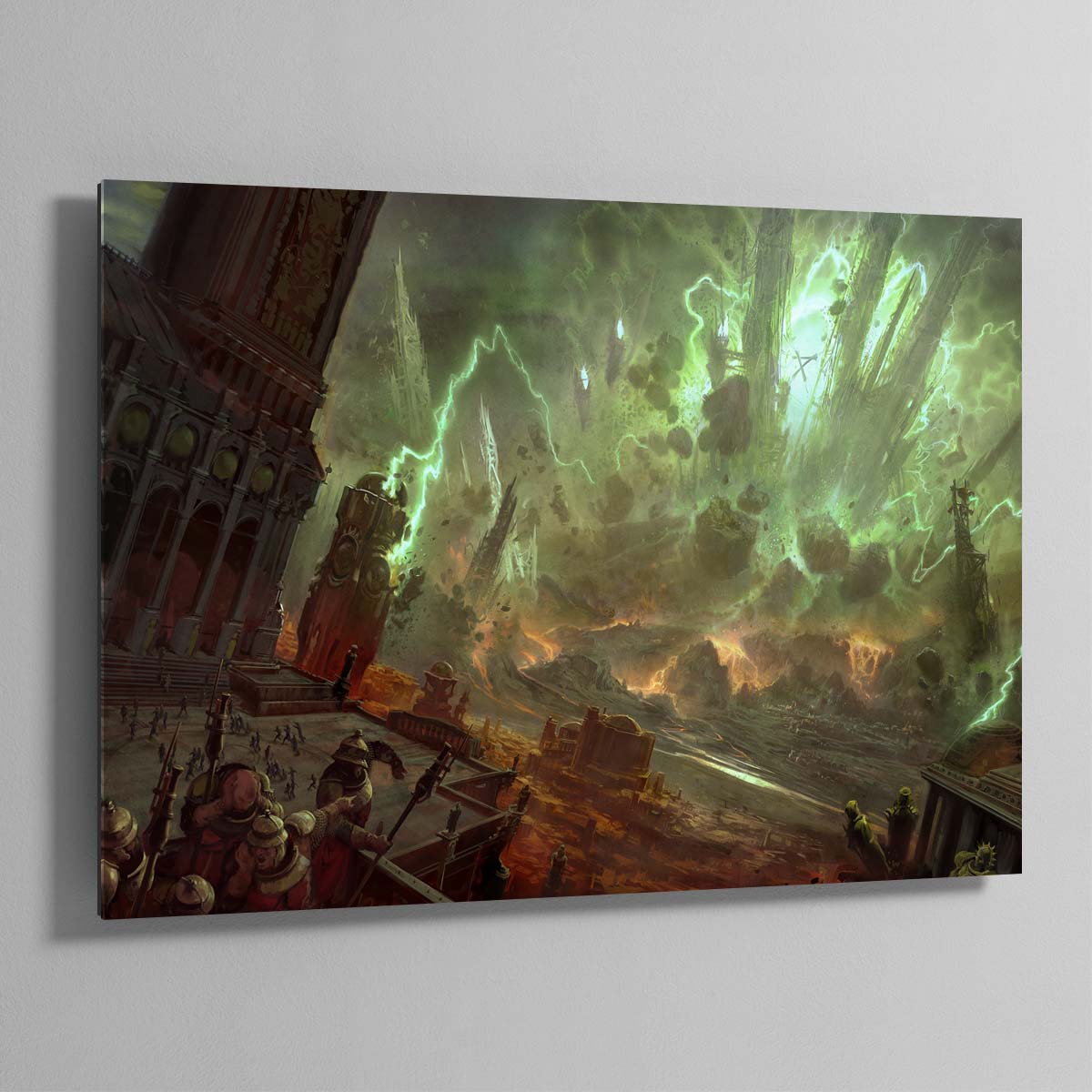 In the blink of an eye, the crust of reality was torn open by the loathsome sorcery of the Skaven. Crooked towers of brass and warpstone thrust their way into the realms. From the rifts they opened in the earth, an endless flow of scab-furred abominations poured forth. Voices joined in shrieking union, this living tide swarmed across the lands, conquering all in the name of the Great Horned Rat. The Vermindoom had been unleashed, and the realms would forever be scarred.