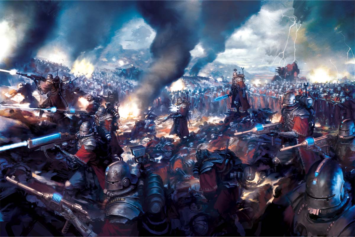 The numberless cohorts of the Skitarii Legions are the cybernetic heart of the Tech-Priests’ military might. They are the foot soldiers of the Cult Mechanicus, fully devoted to the faith, and heavily modified by their masters with bionic enhancements, their neural cortexes inloaded with martial protocols. To witness them marching to war is akin to seeing a bizarre and grotesque religious procession conducted with scientific precision. They are a macabre mix of living tissue and mechanical augmentation, responding immediately to the broadcast imperatives of their superiors.
