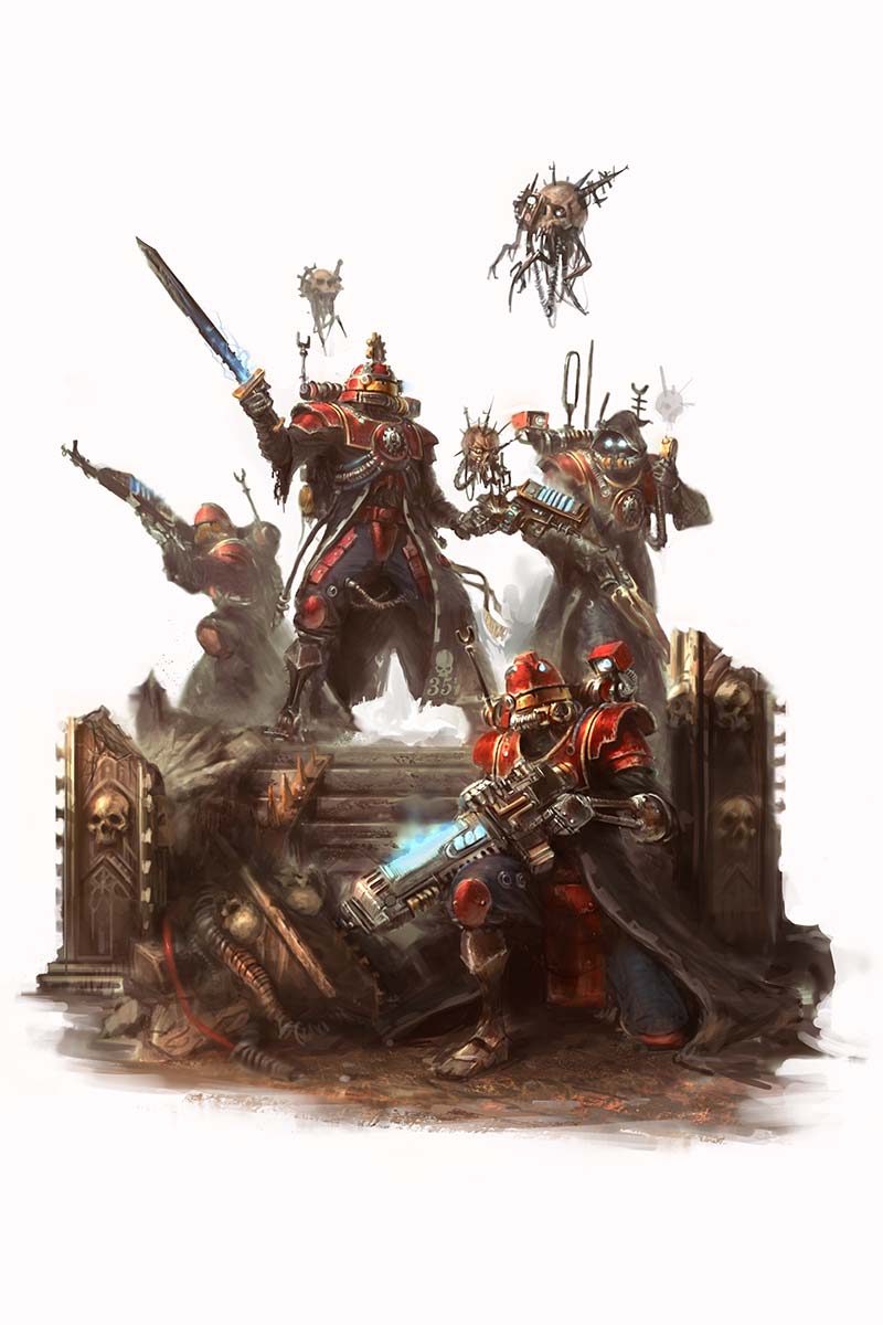 Skitarii Vanguard are assigned to the most hazardous war zones the galaxy can offer. They bear this duty stoically and in solemn silence, fighting to the last in the name of their inhuman god.