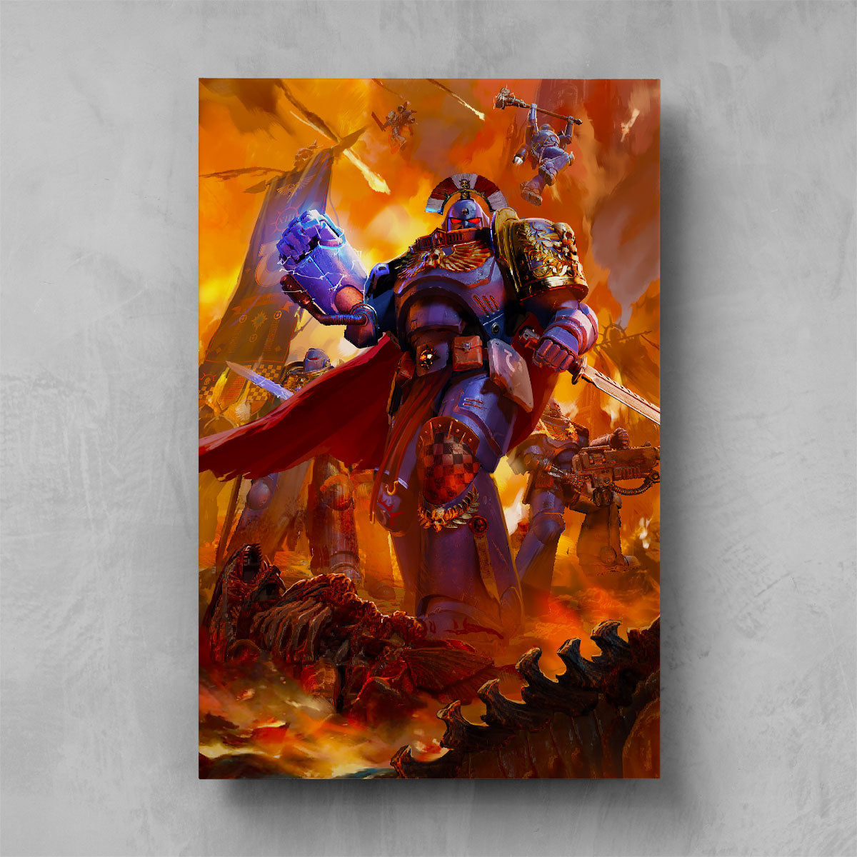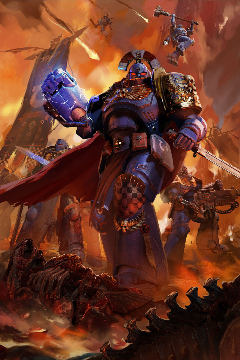 Artwork from the long-anticipated 2024 video game Warhammer 40,000: Space Marine II, developed by Saber Interactive and published by Focus Entertainment.