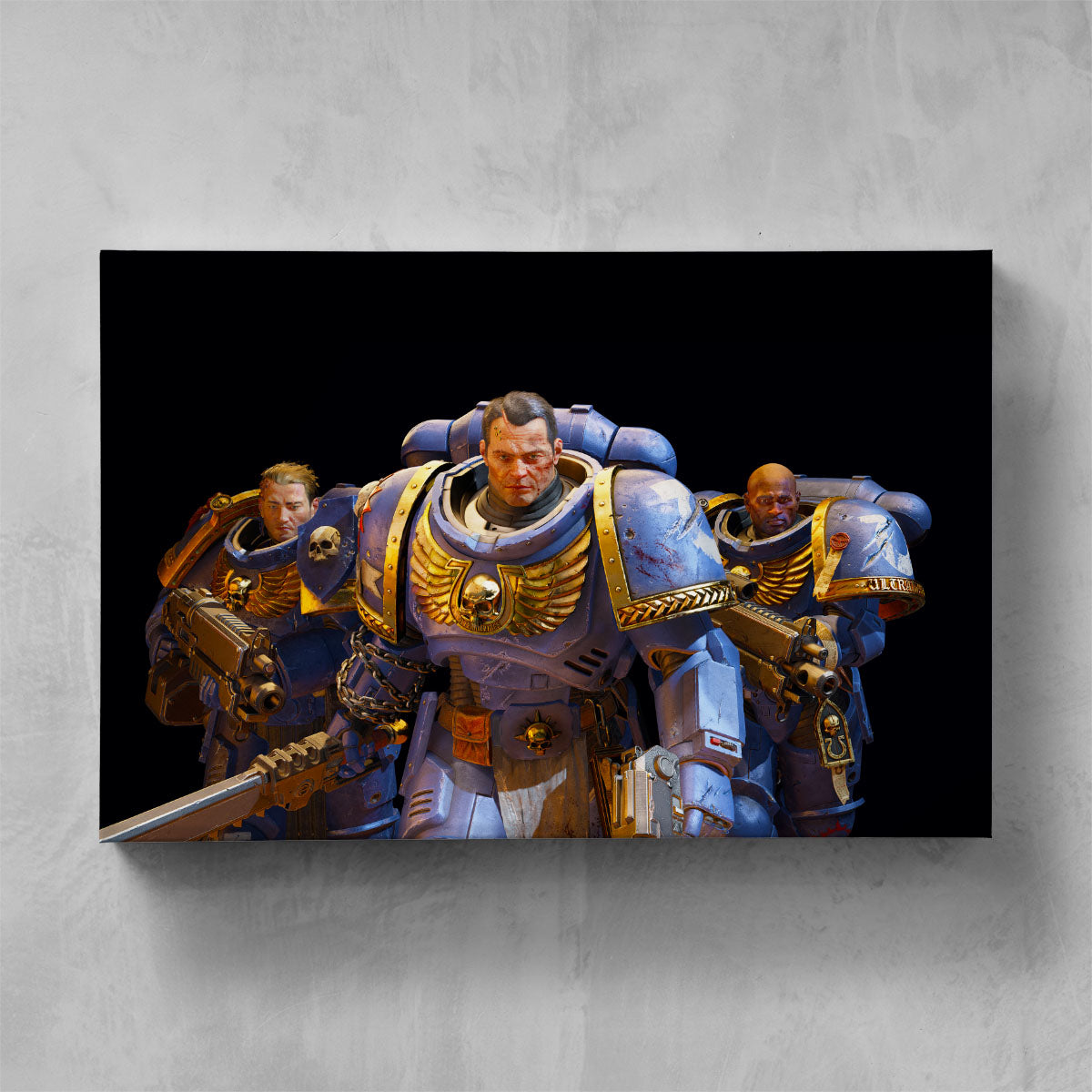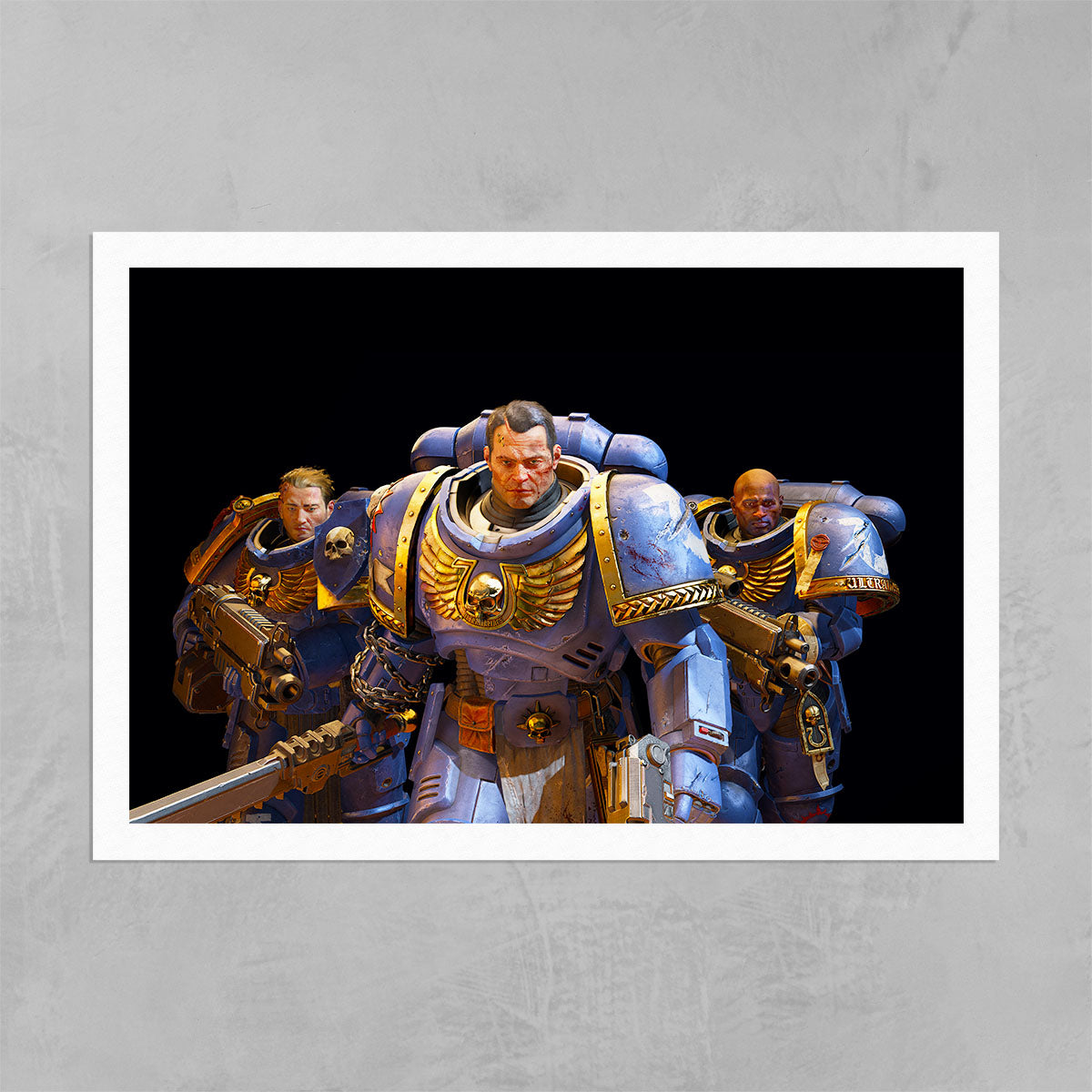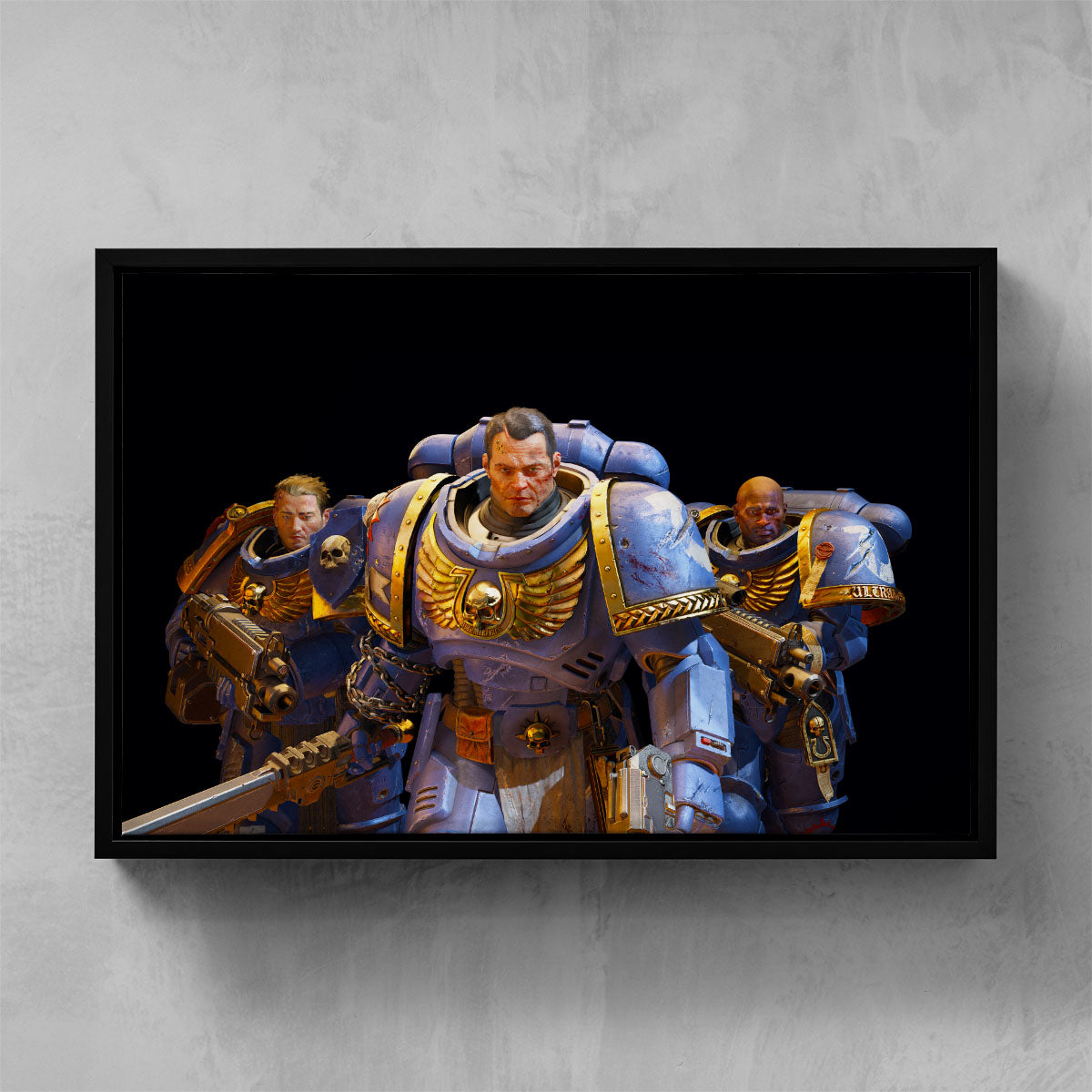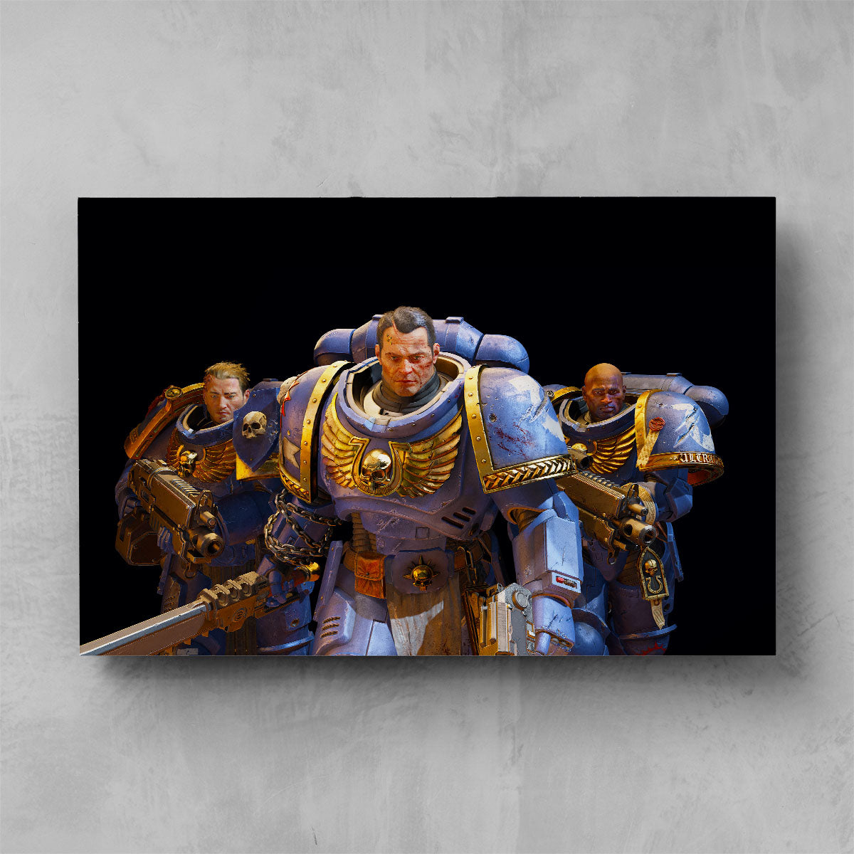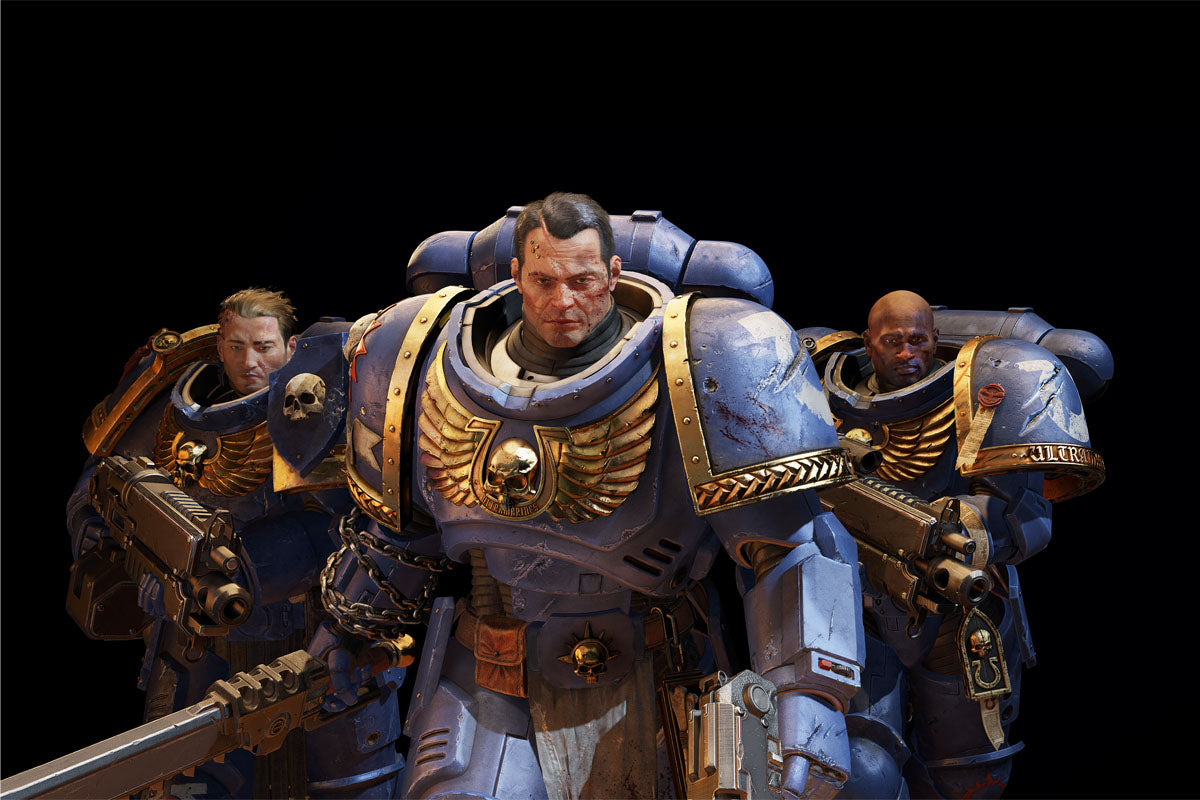 Artwork from the long-anticipated 2024 video game Warhammer 40,000: Space Marine II, developed by Saber Interactive and published by Focus Entertainment.