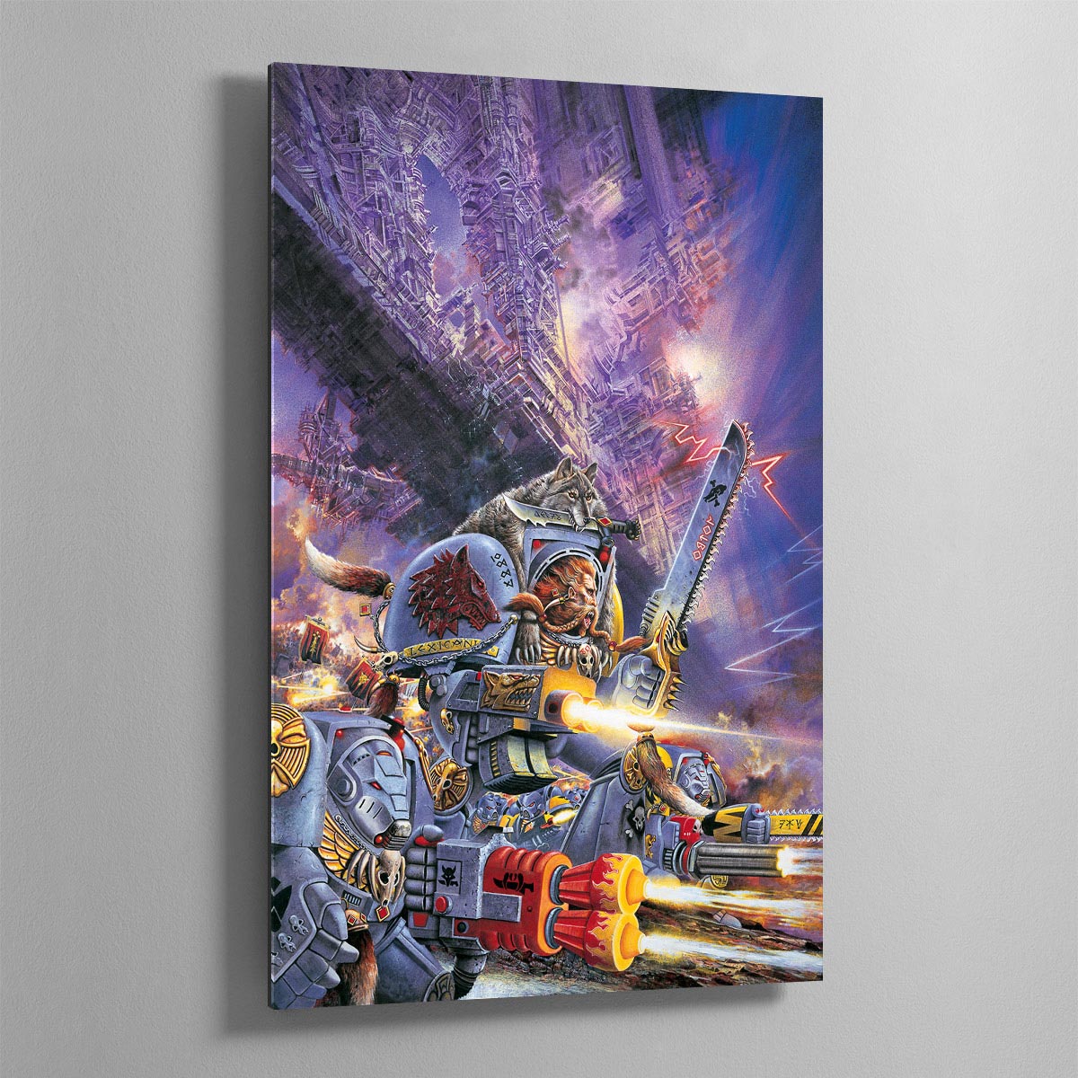 This image adorned the cover of the second edition Space Wolf Codex. The red weapon covers hark back to an earlier time that old-school gamers will remember fondly.