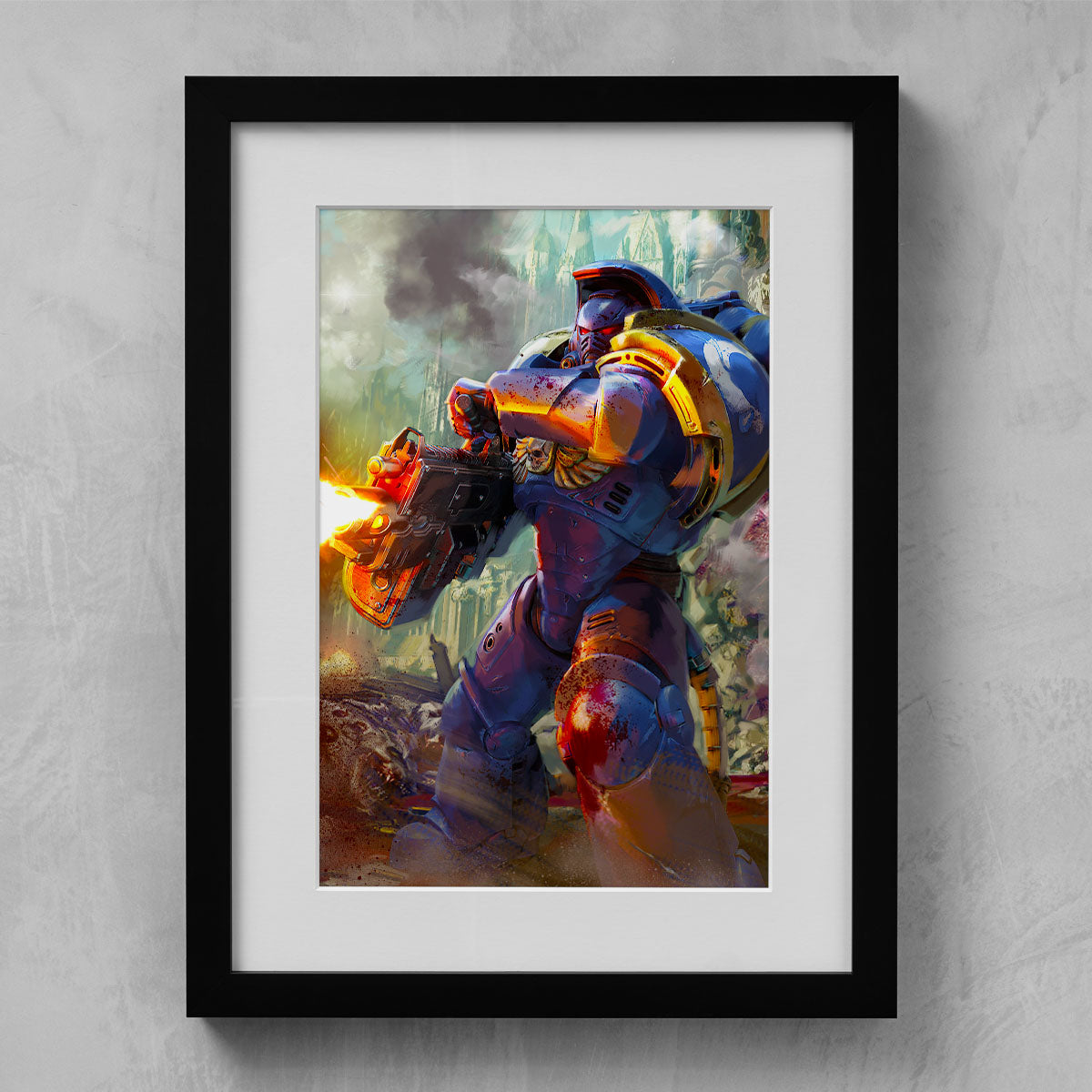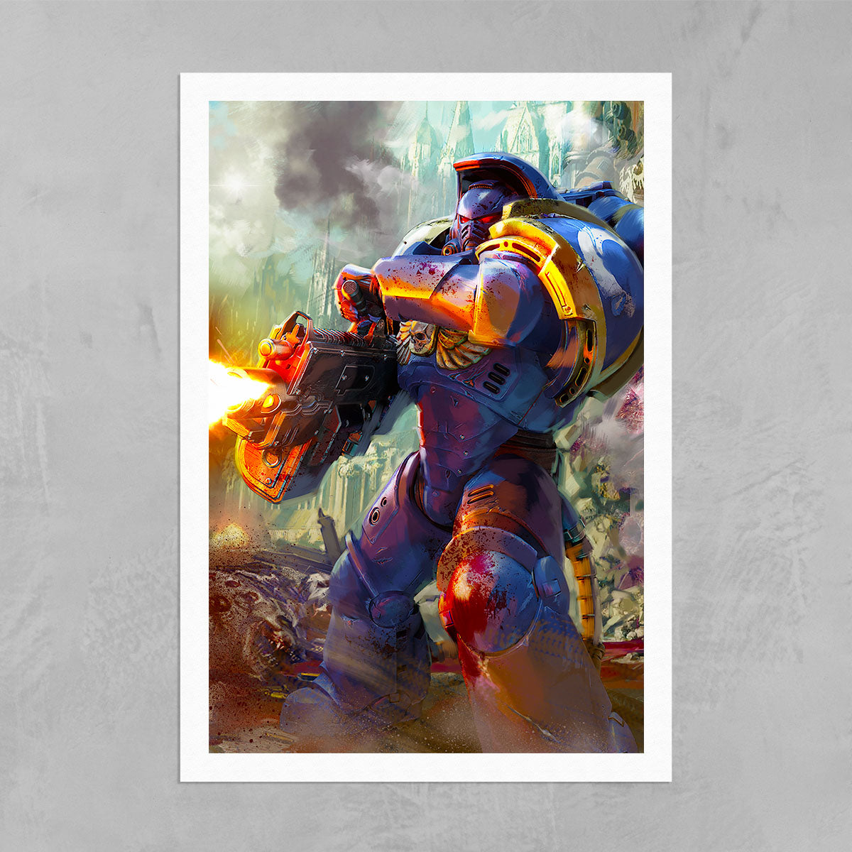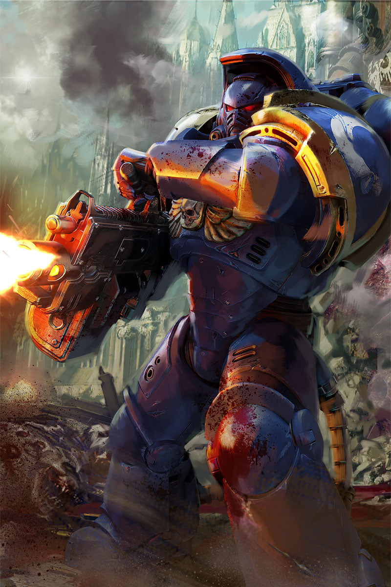 Artwork from the long-anticipated 2024 video game Warhammer 40,000: Space Marine II, developed by Saber Interactive and published by Focus Entertainment.