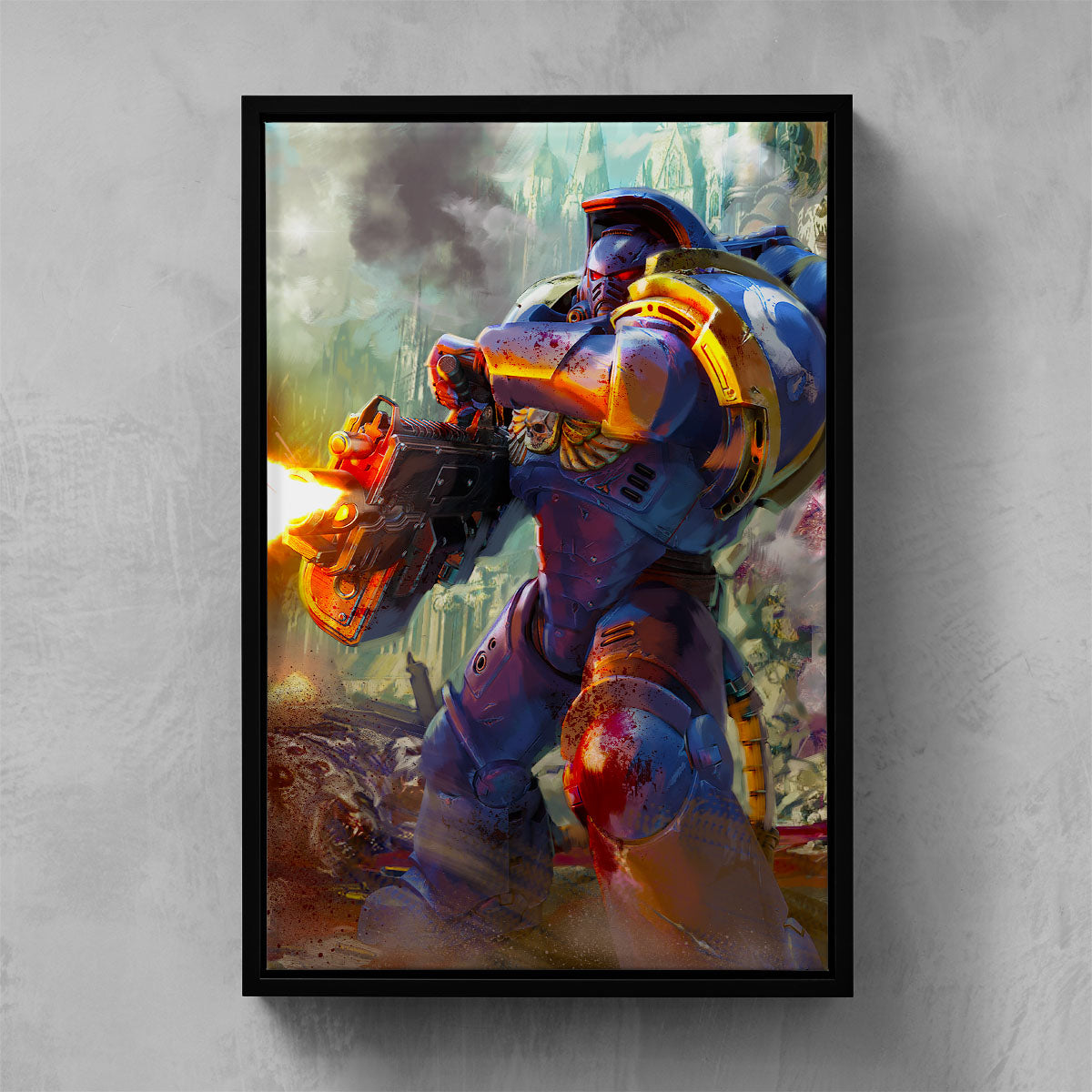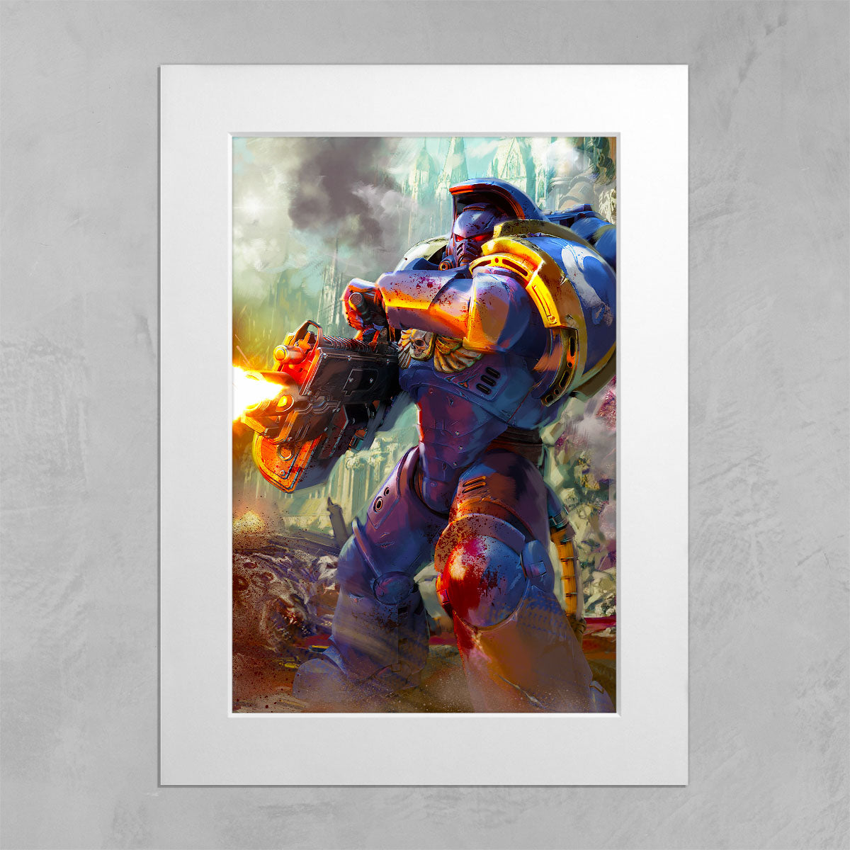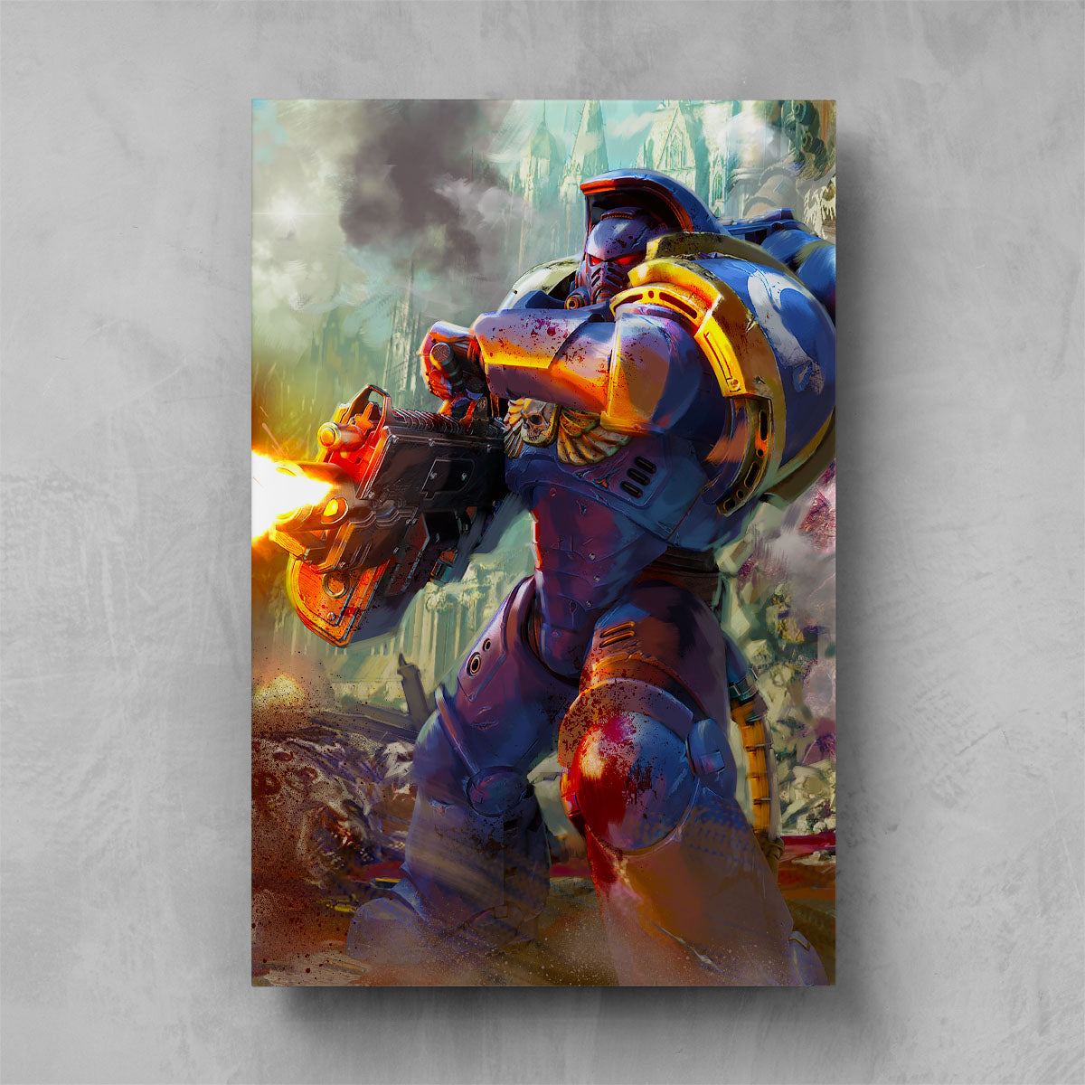 Artwork from the long-anticipated 2024 video game Warhammer 40,000: Space Marine II, developed by Saber Interactive and published by Focus Entertainment.