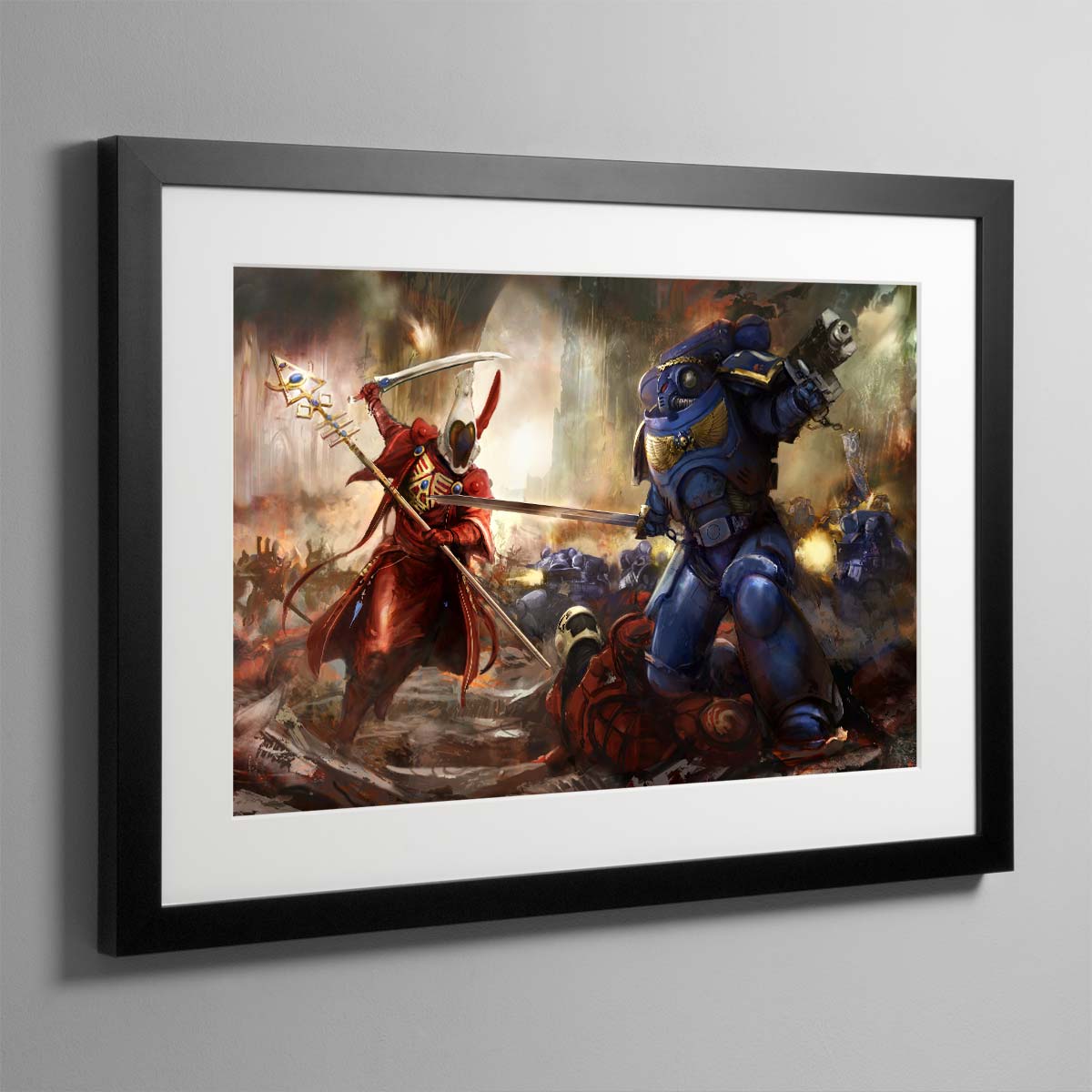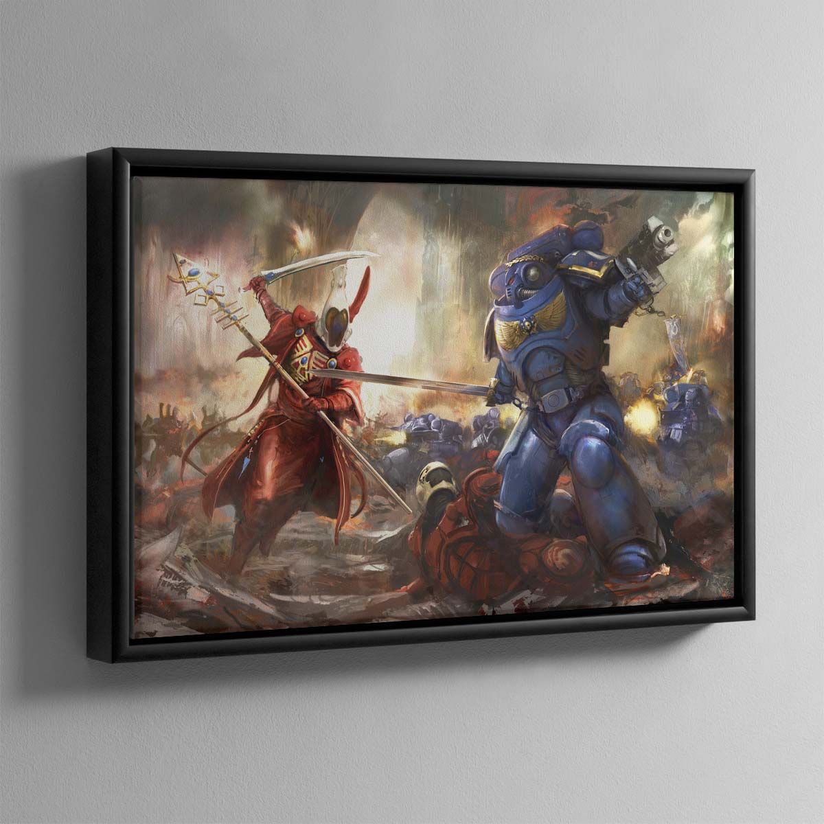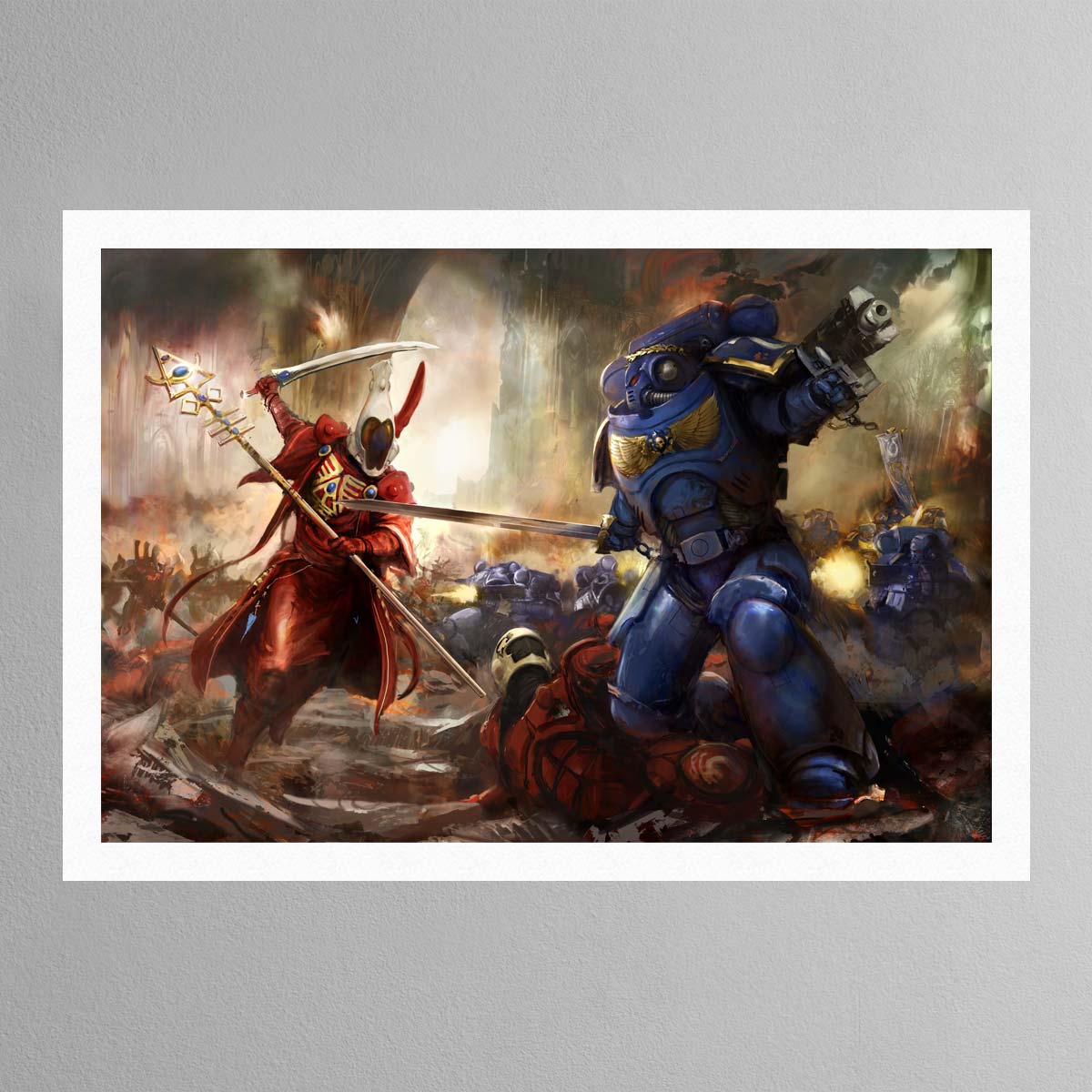A battle scene depicting the aeons-old conflict between the Aeldari and the Imperium.