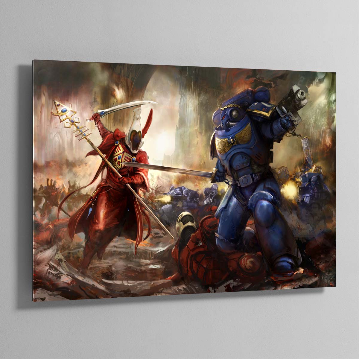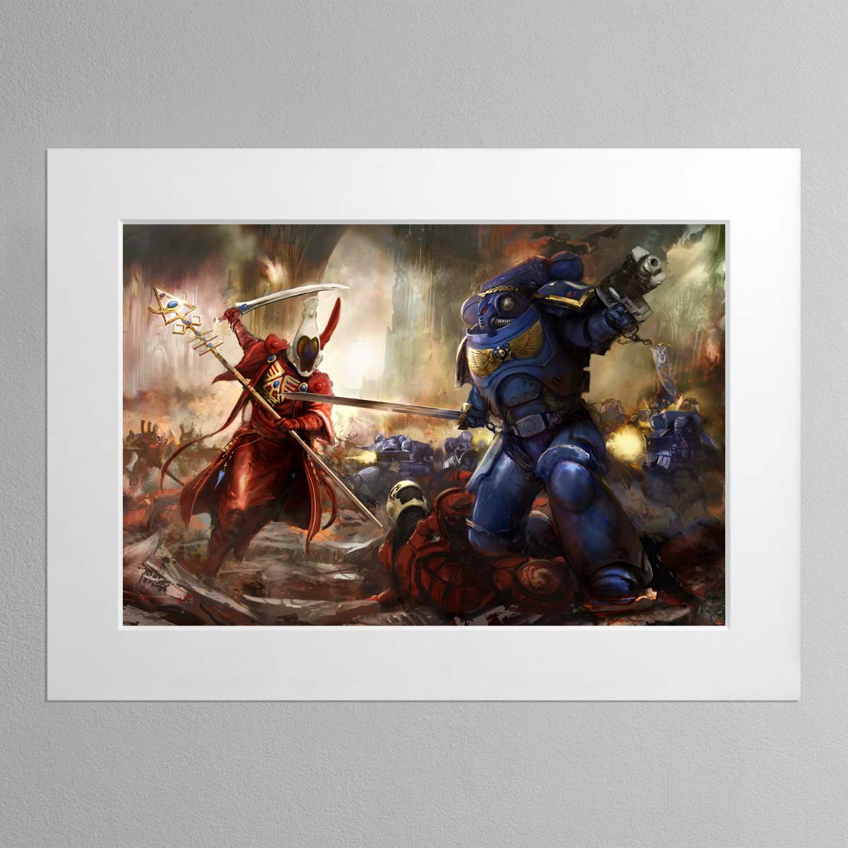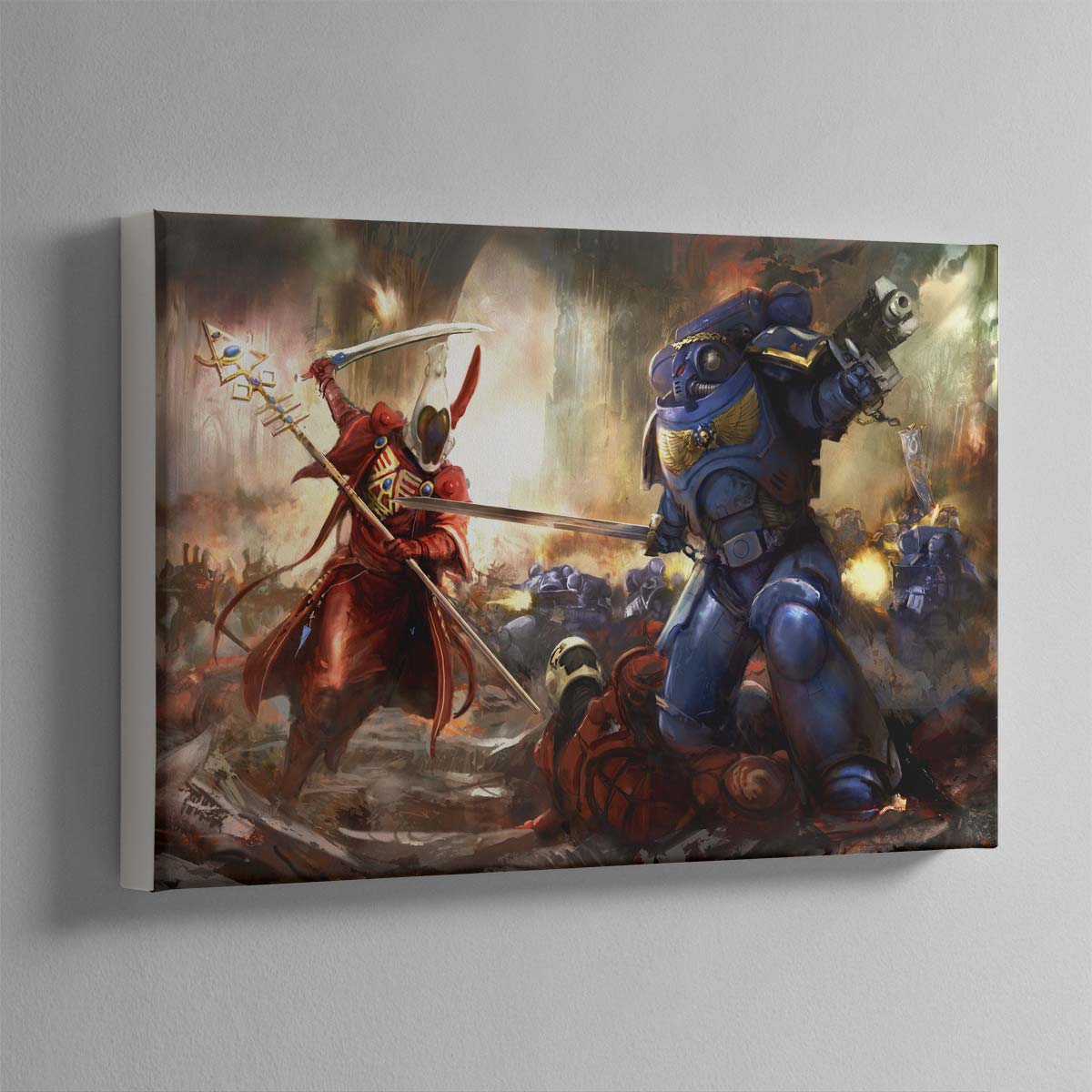 A battle scene depicting the aeons-old conflict between the Aeldari and the Imperium.